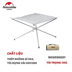 - THÔNG TIN SẢN PHẨM: - Thương hiệu: NatureHike - Mã sản phẩm: NH20SK001 - Chất liệu: Thép Không Gỉ 304, túi đựng vải Oxford - Kích thước sử dụng: 41.5x41.5x26.5cm - Kích Thước đóng gói: φ10x23.5cm - Trọng lượng: 0.8kg - Tải trọng: 5kg - Màu sắc: Bạc - Danh mục phụ kiện: Lưới lửa x1 / Thanh trên x4 / Thanh dưới x4 / Khung thanh giữa x1 / Túi đóng gói x1 / Vòng khóa lưới x5 / Vòng khóa khung x2 - Xuất xứ: Trung Quốc