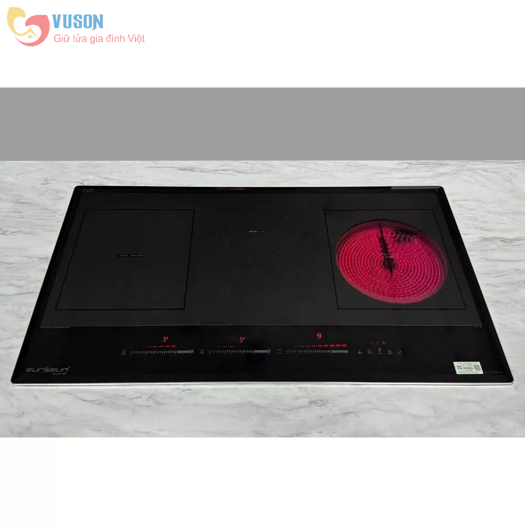 Bếp điện từ Eurosun EU-TE887G Bếp điện từ Eurosun EU-TE887G là sự kết hợp độc đáo của bếp từ và bếp hồng ngoại đáp ứng nhu cầu nấu nướng đa dạng của gia đình. Vùng nấu từ