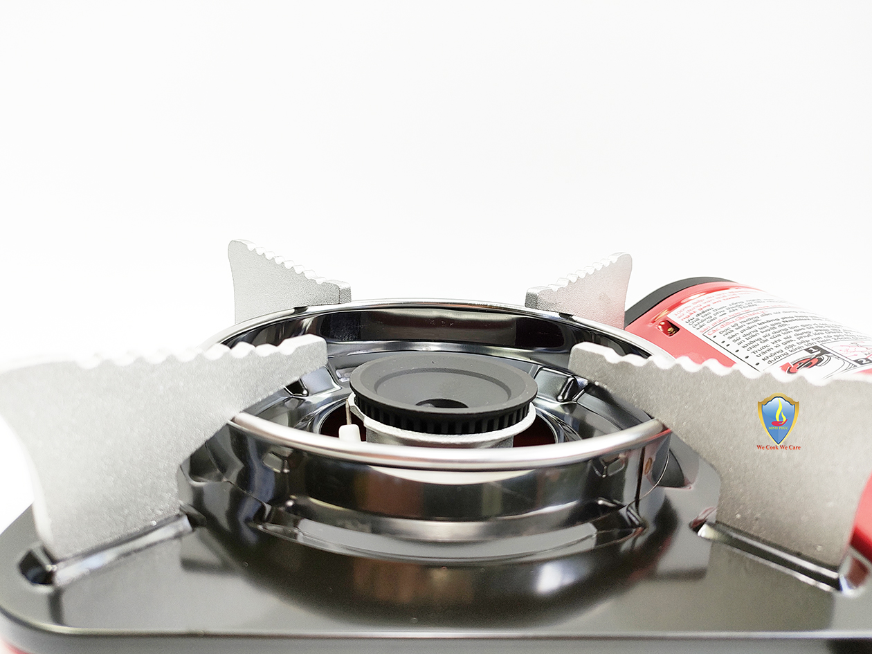 Bếp du lịch sử dụng van ngắt gas an toàn tự động Inline Cut. Bếp sử dụng hệ thống đầu đốt theo tiêu chuẩn JIA (Nhật Bản), kết hợp vòng chắn gió, giúp ngọn lửa