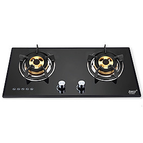 Bếp 02 lò: 01 lò to, 01 lò nhỏ Mâm chia lửa bằng đồng Hệ thống đánh lửa pin Pép hầm tiết kiệm gas Mặt kính cường lực, màu đen Kiềng gang đúc Lượng gas