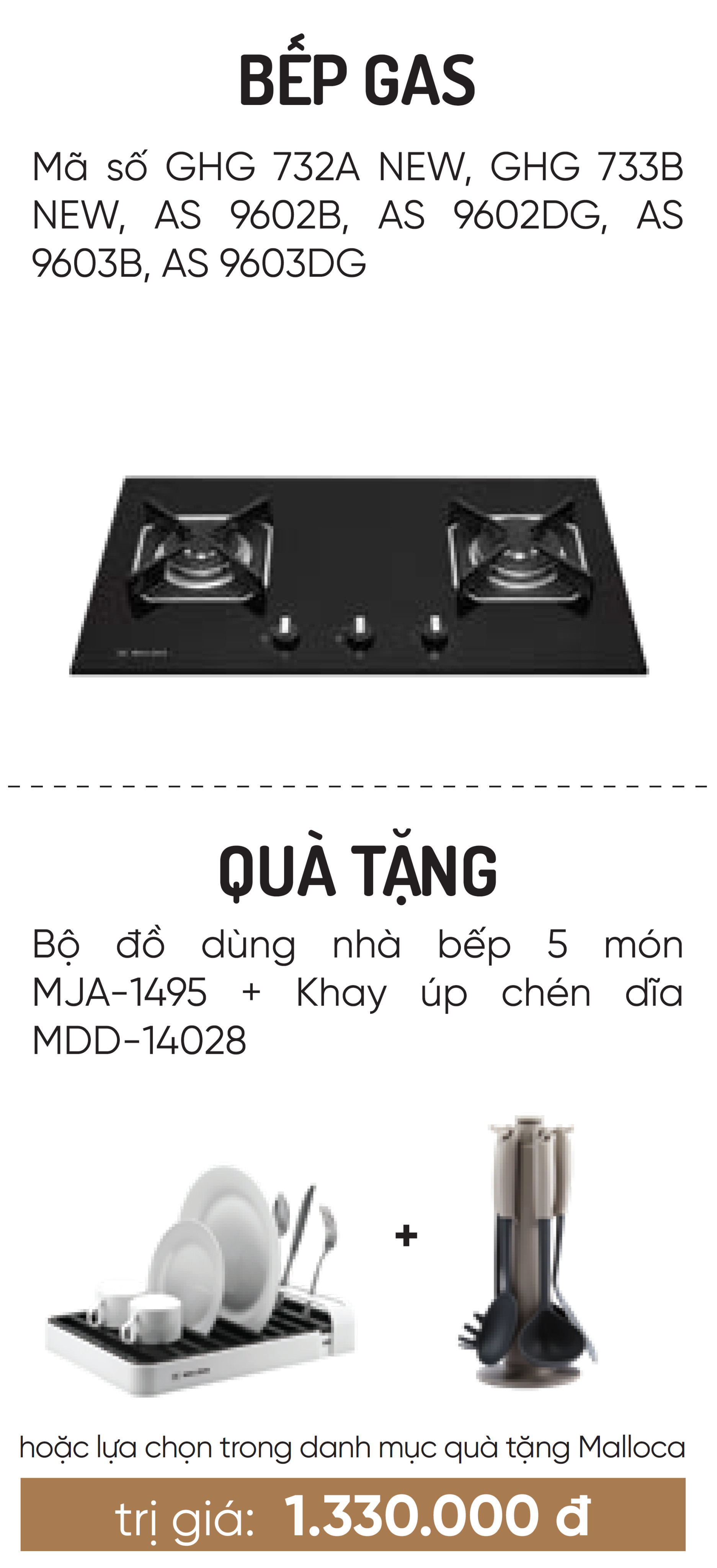 KIMQUOCTIEN.COM I Bếp gas âm 2 gas Malloca AS 9602DG + Bếp gas âm 3 gas Malloca AS 9603B