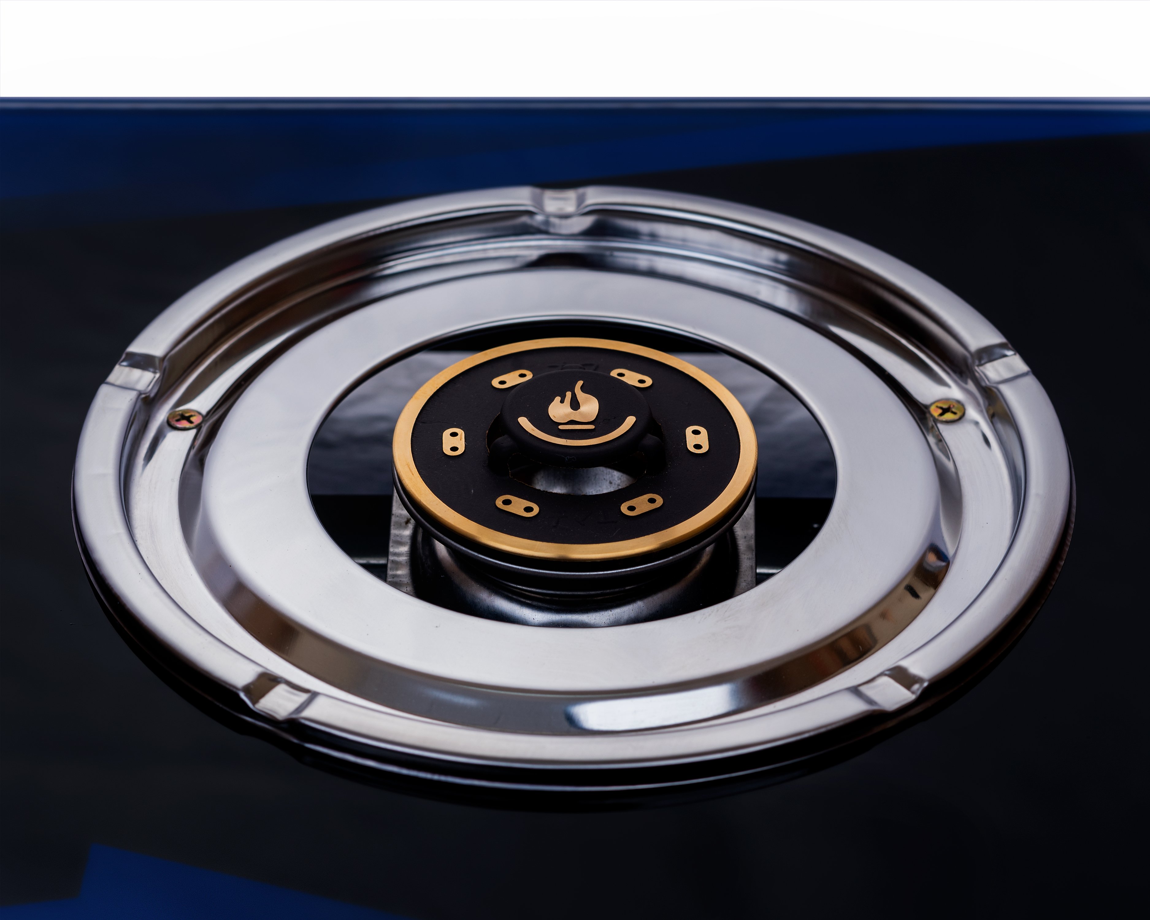 * Mặt kiếng cao cấp chịu lực, chịu nhiệt, thiết kế hoa văn sang trọng; - Thân bếp bằng inox, cao 100 mm; - Kiềng thép sơn tĩnh điện, có chắn gió; - Điếu loe
