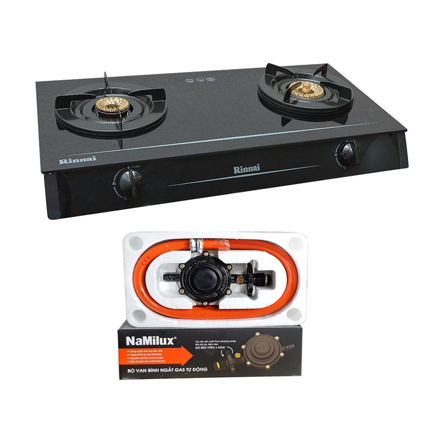 ✨Bếp Gas Dương Đôi Rinnai RV-6 Double Glass(B) Tặng kèm 1 bộ van và dây gas- Hàng chính hãng