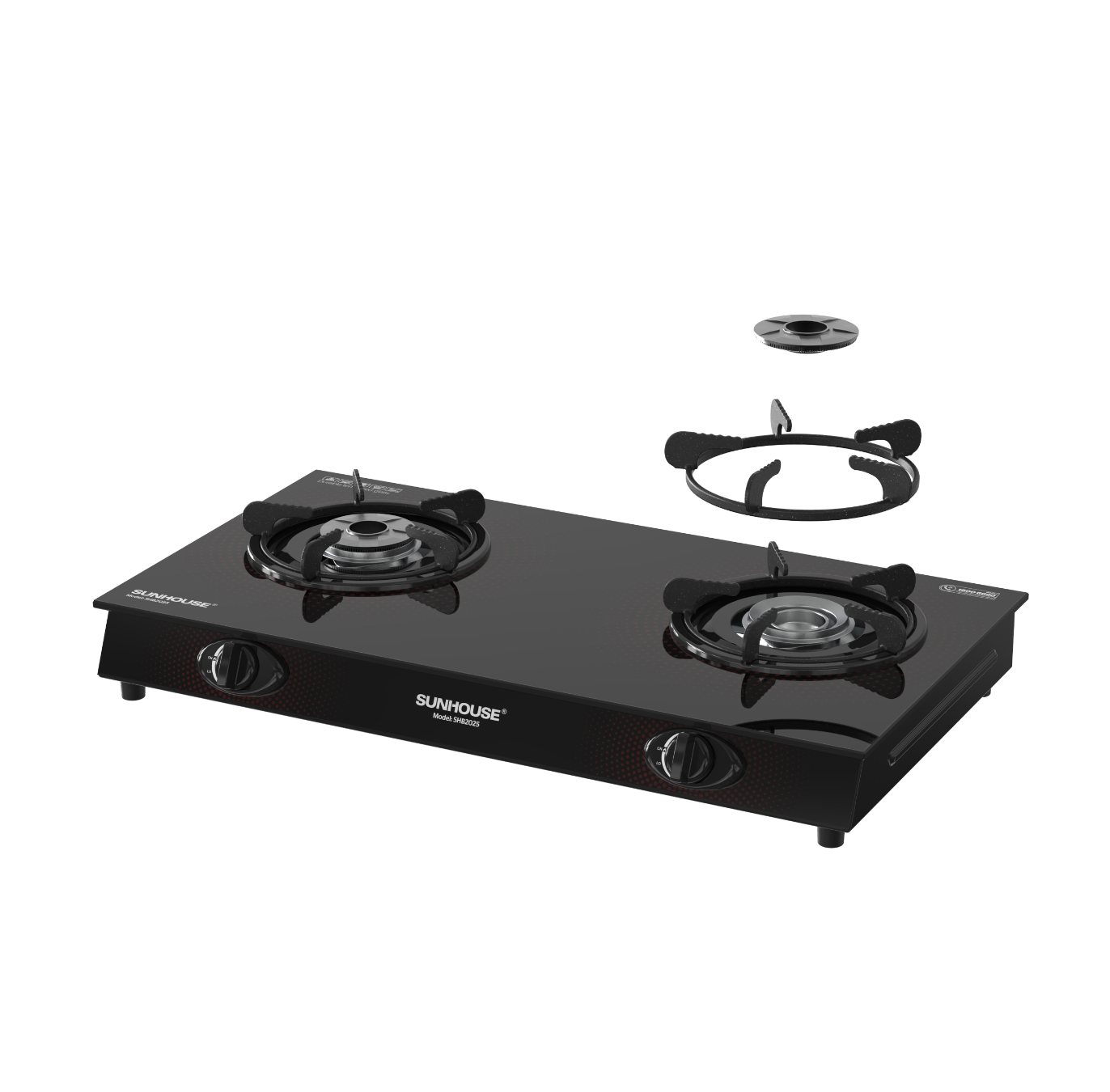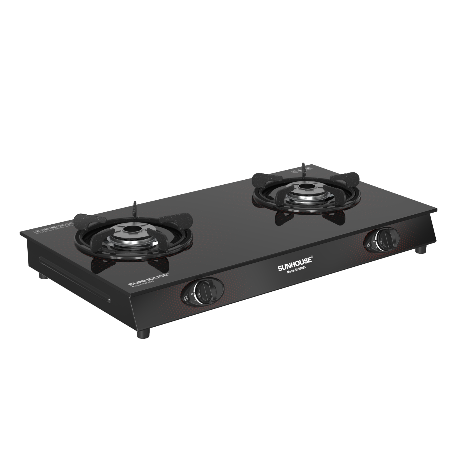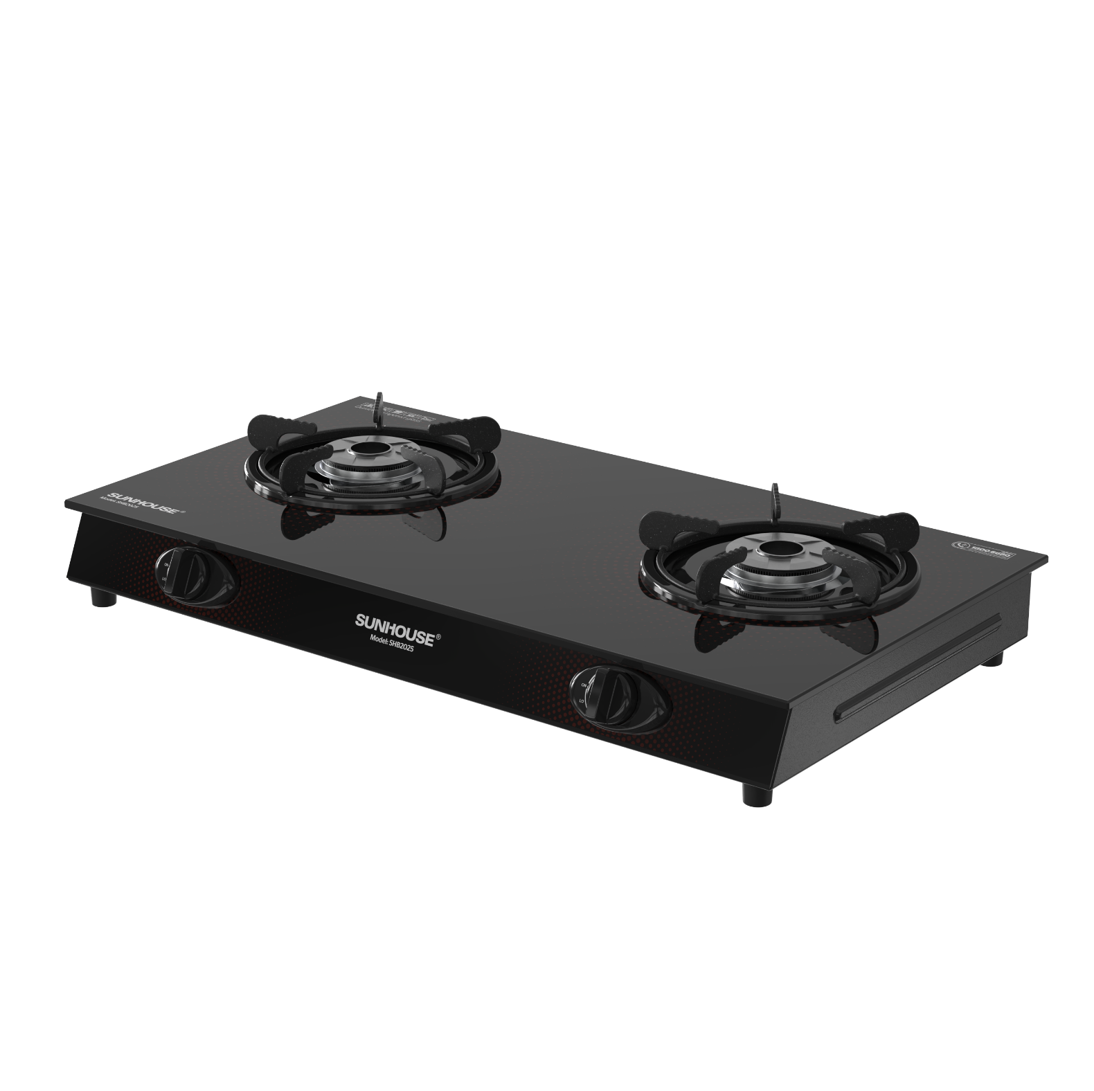 Bếp gas dương kính SUNHOUSE SHB2025 có 2 vùng đun, điều khiển lửa to, nhỏ bằng núm vặn tiện lợi, chế biến được nhiều món ăn cùng lúc. Mặt kính với gam màu đen trang nhã, sang trọng kết hợp cùng hoạ tiết kẻ sọc tinh tế.