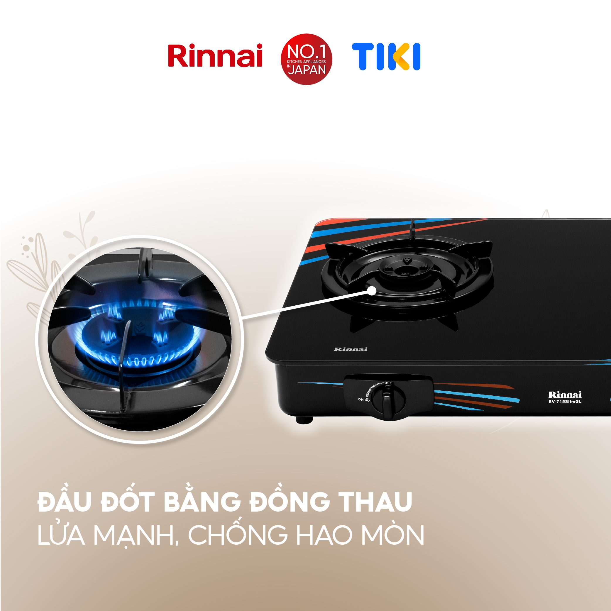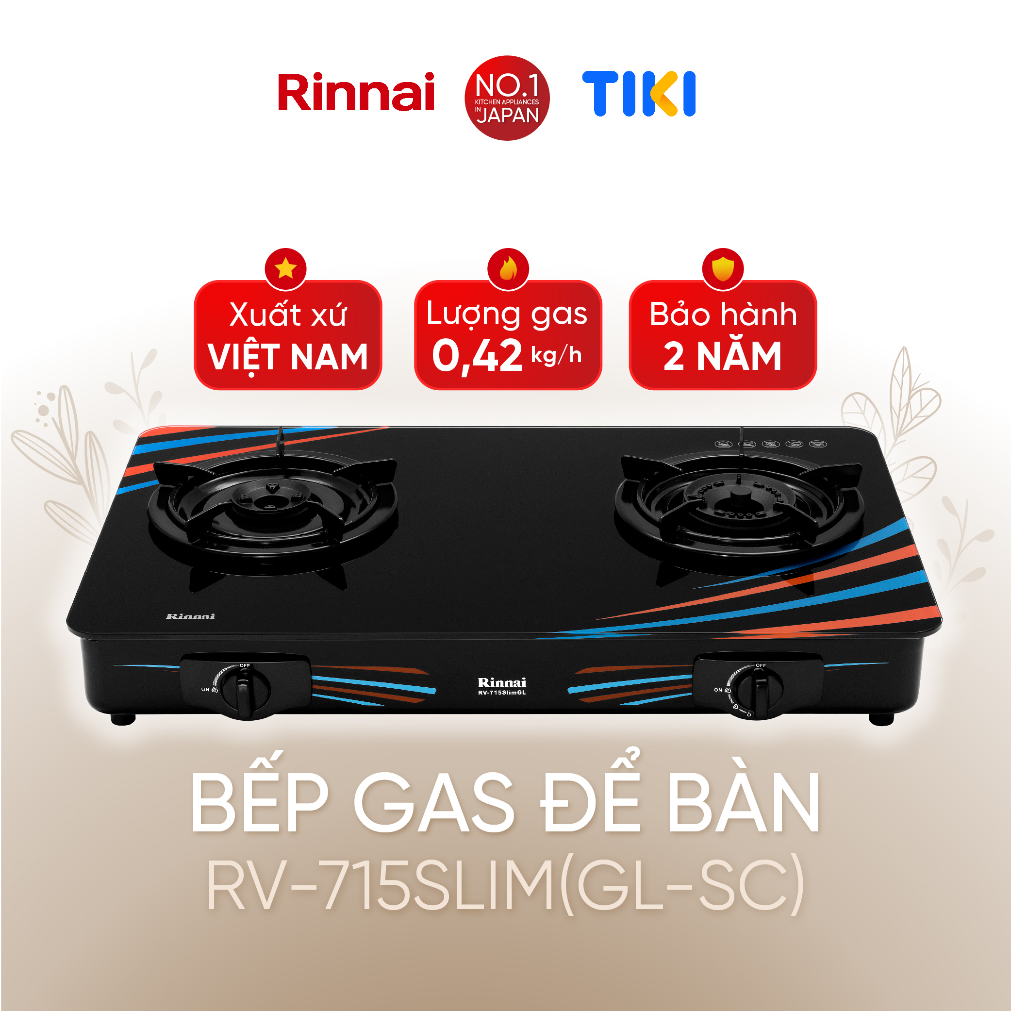 RINNAI chân thành cảm ơn bạn đã quan tâm đến sản phẩm: Bếp gas dương Rinnai RV-715Slim(GL-SC) mặt bếp kính và kiềng bếp men - Hàng chính hãng.