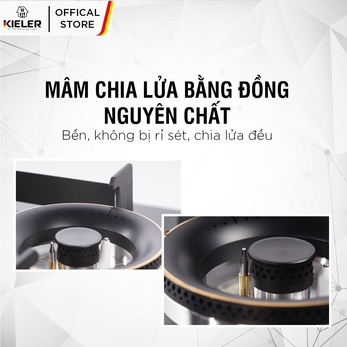 • Họng bếp bằng đồng chống oxy hóa, tăng tuổi thọ bếp