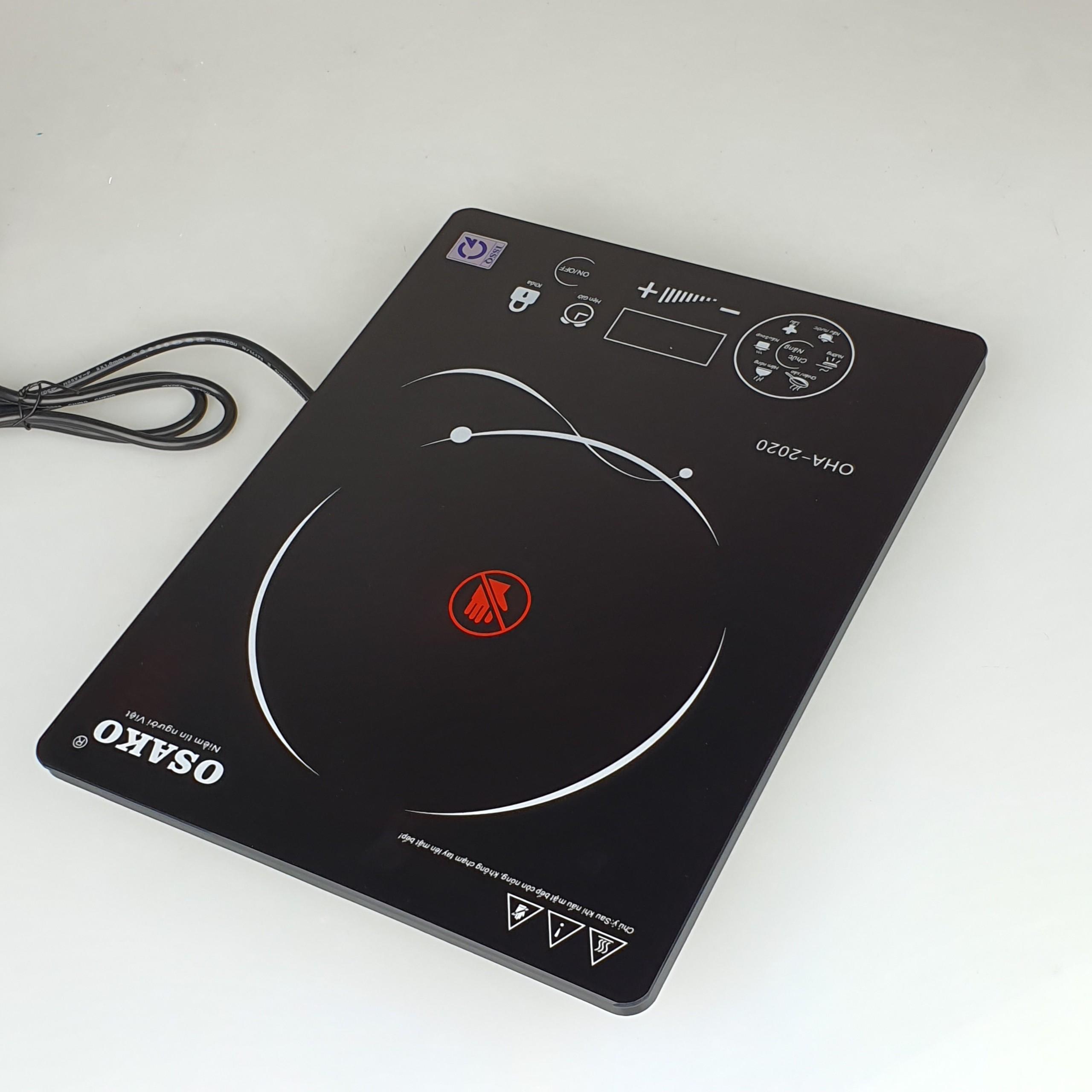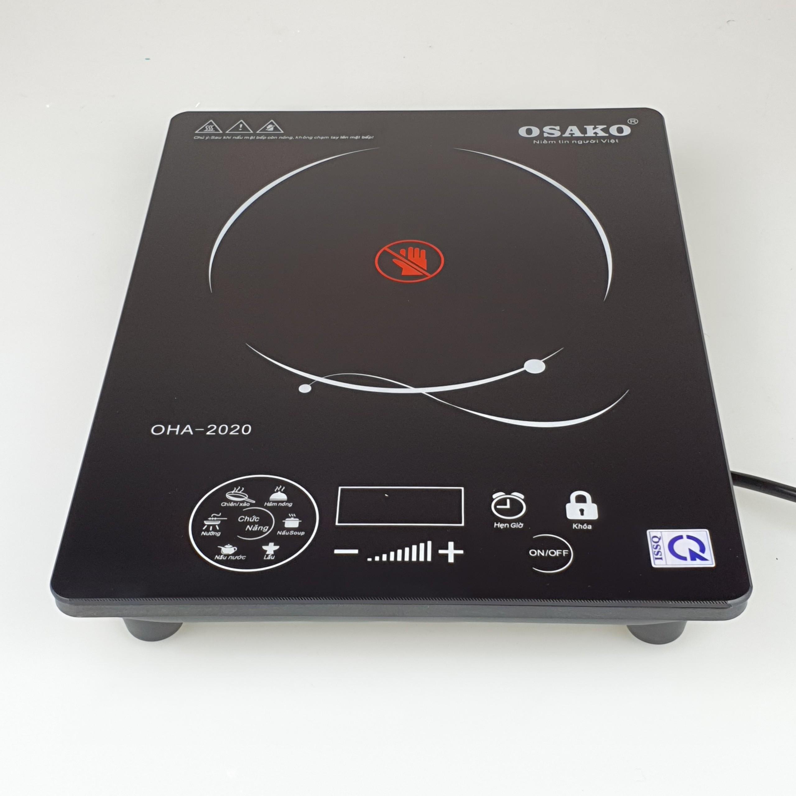 Bếp hồng ngoại không kén nồi, bếp điện hồng ngoại mặt kính ceramic, siêu bền Osako OHA-2020 ️ CÔNG SUẤT 2000W, ĐIỀU CHỈNH NHIỆT ĐỘ: Bếp sở hữu công suất lên đến 2000W, điều khiển nhiệt độ bằng cảm ứng. Nhiệt độ của bếp có thể điều chỉnh phù hợp nấu nhiều loại thức ăn như sữa, bột em bé, hâm thức ăn, cho đến các loại thức ăn cần nhiệt cao như chiên, nấu lẩu, ️ MẶT KÍNH CERAMIC SIÊU BỀN, CHỐNG TRẦY XƯỚC, DỄ DÀNG VỆ SINH: Kính Ceramic là loại vật liệu rất cứng, bền, chống trầy xước tốt, chịu được mức nhiệt rất cao và ít ảnh hưởng khi sốc nhiệt do đó được sử dụng làm mặt kính bếp điện như bếp từ, bếp hồng ngoại. Mặt kính Ceramic khó bị bám dính nên rất dễ dàng lau chùi khi bị thức ăn văng xuống. Bếp có thể chịu được trọng lượng lên đến 25Kg ️ CHỨC NĂNG HẸN GIỜ, CẢNH BÁO ÂM THANH, TẠM DỪNG NẤU: Bếp thiết kế các chức năng nhằm tạo thuận tiện cho người sử dụng như: chức năng hẹn giờ nấu giúp bạn có thể làm việc khác khi đang nấu, chức năng tạm dừng khiến bếp không cần thời gian khởi động giữa các lần nấu - không cần tắt bếp, cảnh báo âm thanh làm cho bạn có thể kiểm soát tốt hơn mà không cần nhìn ️ NHIỀU CHỨC NĂNG NẤU: Bếp thiết kế sẵn nhiều chức năng nấu với các mức nhiệt đã được thử nghiệm, tiện lợi hơn cho mọi người sử dụng. Chức năng: Nấu Soup, nấu nước, nấu lẩu, nướng, chiên/xào, hâm nó THÔNG SỐ KỸ THUẬT Tên sản phẩm: Bếp hồng ngoại Osako OHA-2020 Loại sản phẩm: Bếp đơn Điện áp: 220V - 240V Tần số: 50Hz - 60Hz Công suất: 2000W Chất liệu mặt bếp: Kính Ceramic cường lực Bảng điều khiển: Cảm ứng Hẹn giờ: Có Cảnh báo âm thanh: Có Xuất xứ: Chính hãng Osako Sản xuất: Trung Quốc Bảo hành: 12 tháng chính hãng trên toàn quốc.