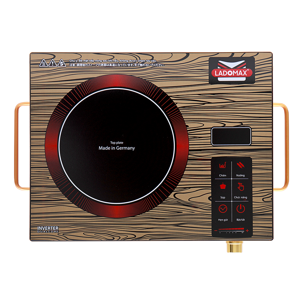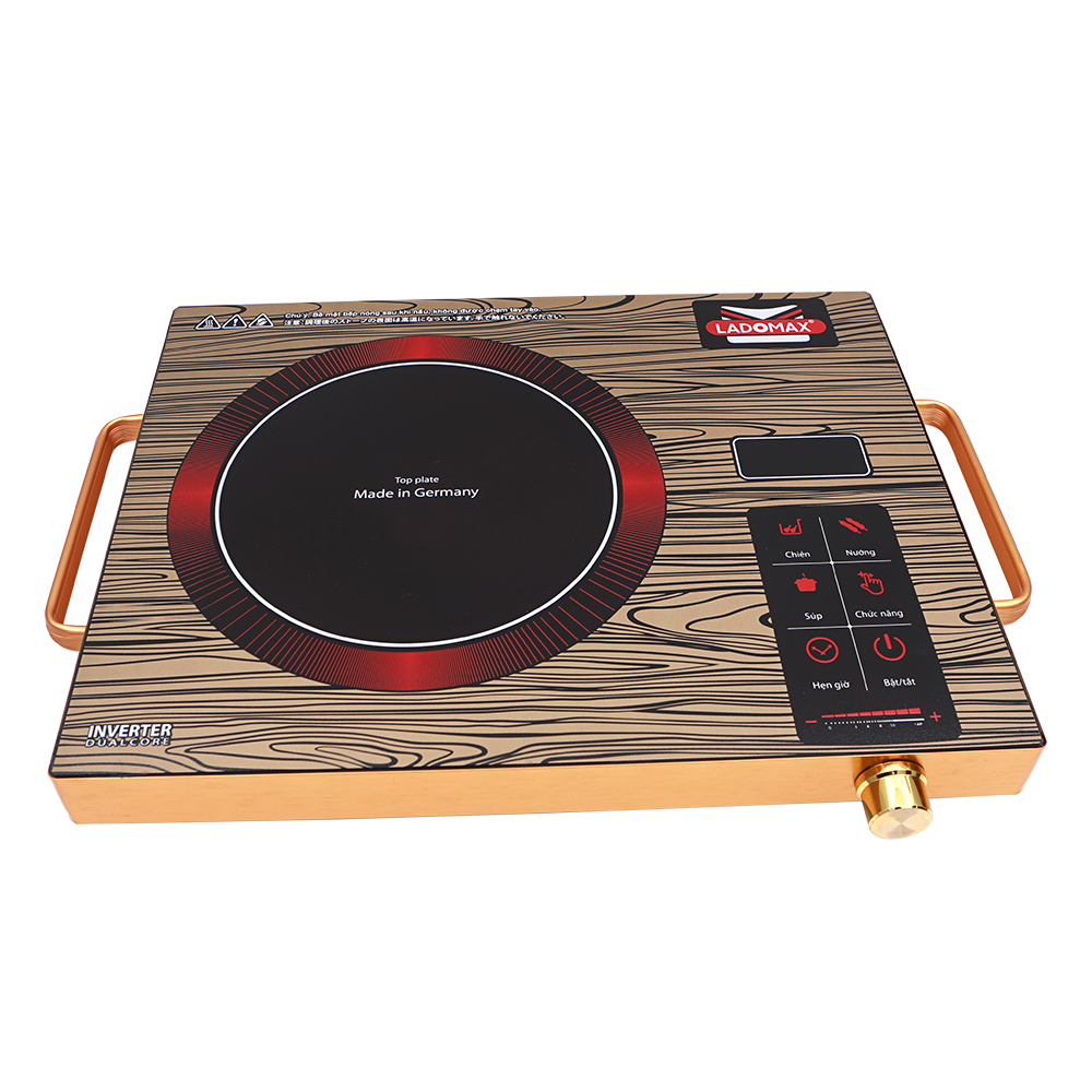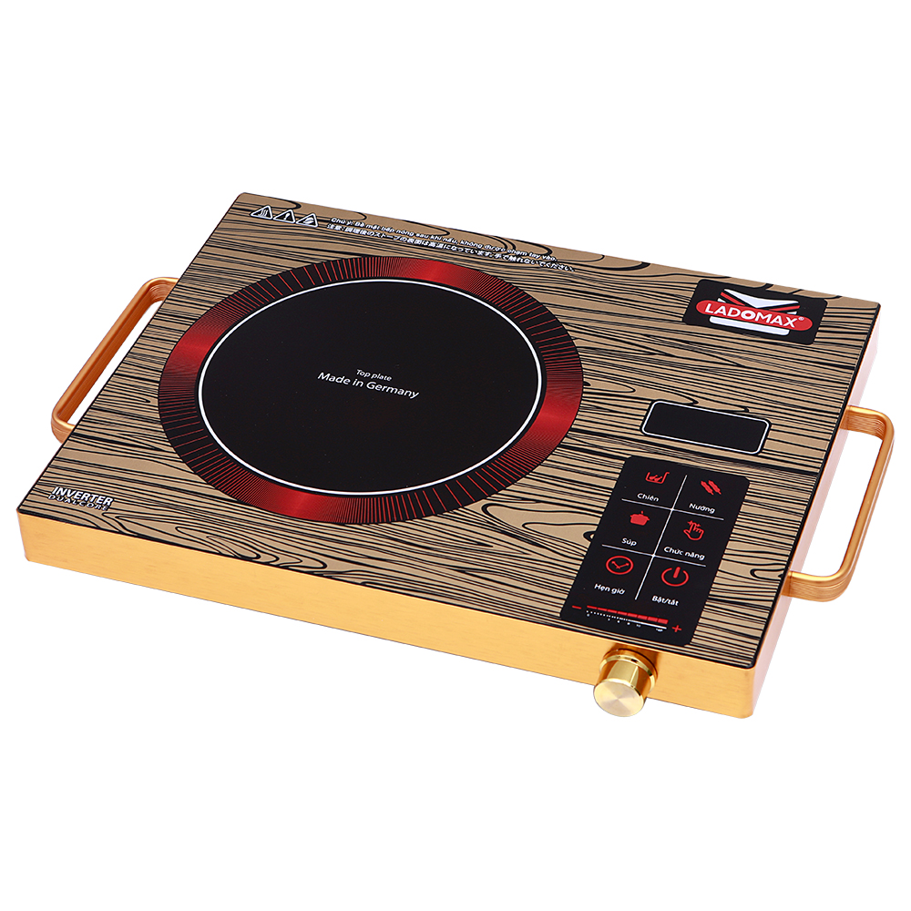 Tên sản phẩm: Bếp hồng ngoại 2200W Ladomax Ha-666 Inox Vân Gỗ Mặt Kính GERMANY Cao Cấp