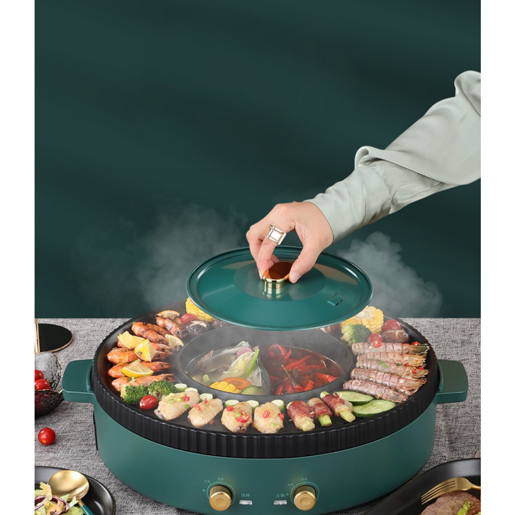 Là một thiết bị nhà bếp sử dụng điện năng để chuyển hóa thành nhiệt năng nhằm mục đích phục vụ 2 nhu cầu cùng lúc đó là: * Nấu lẩu * Làm đồ nướng