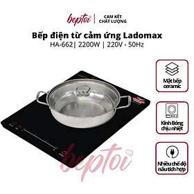 ️ Mặt kính to siêu bền, chịu lực, chịu nhiệt Mặt bếp điện từ LADOMAX HA-662 phủ kính ceramic chịu lực, dễ dàng làm sạch, chống trầy xước. Đặc biệt, mặt bếp có khả năng chịu được nhiệt độ lên đến 600 độ C, chịu lực tốt, hạn chế nứt vỡ, giúp bạn yên tâm nấu nướng.