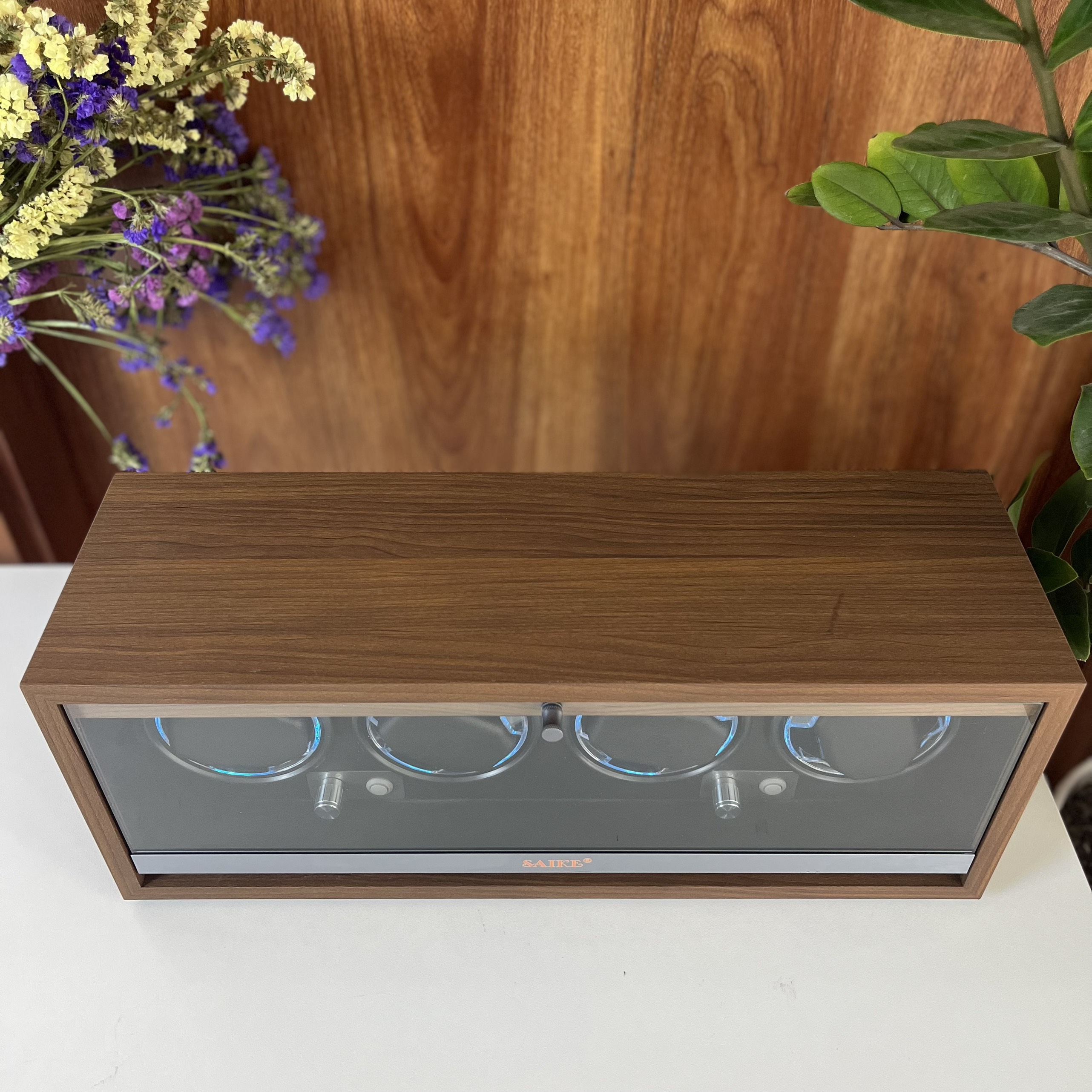 Thông tin sản phẩm: Hộp Xoay Đồng Hồ Cơ 2 Ngăn SAIKE S2004 Vỏ Gỗ Có Đèn LED - Tủ Đồng Hồ Cơ Xoay - Chất liệu: thân phôi là gỗ MDF, bảng bên trong
