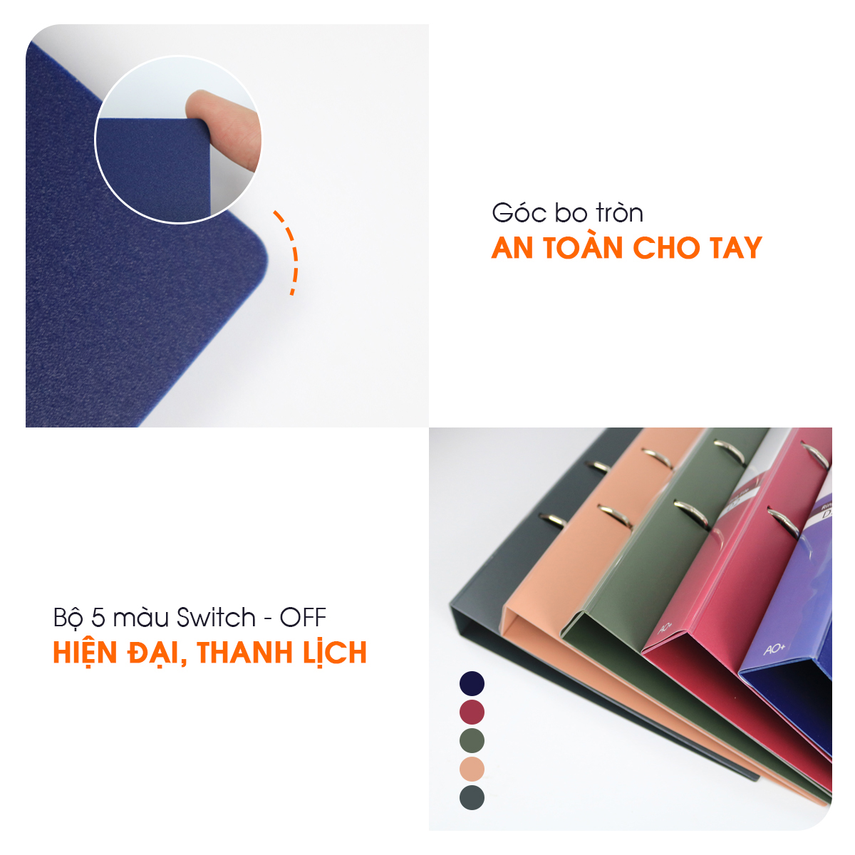 THÔNG TIN SẢN PHẨM: - Bìa còng A5 Switch AO+ lưu trữ tài liệu gáy 3.5cm chất liệu nhựa PP WB213/WB214 - Chất liệu: nhựa PP cao cấp, thân thiện với môi trường. - Kích
