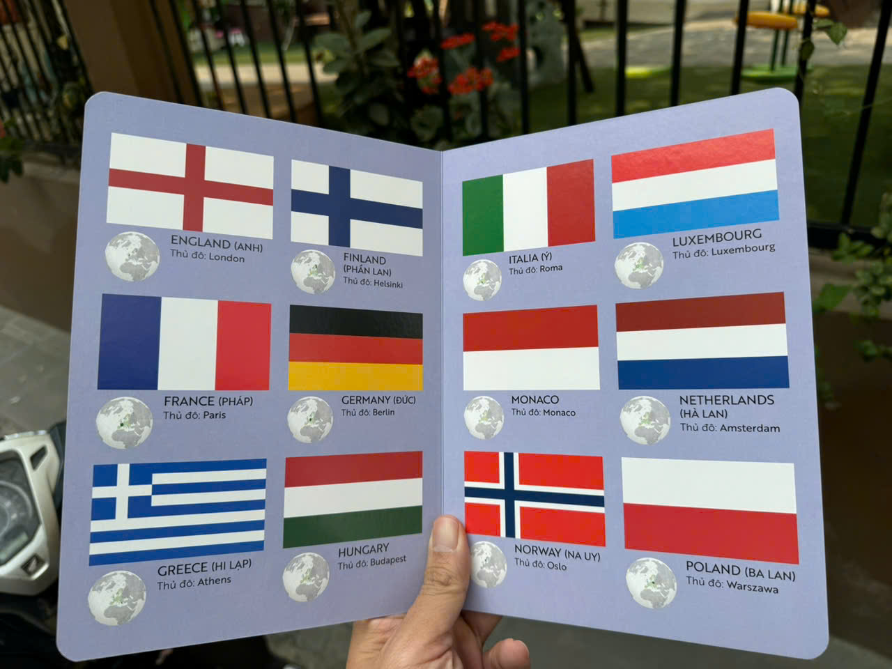 "BÁCH KHOA THƯ ĐẦU ĐỜI CỦA TỚ - 100 TỪ MỚI VỀ CỜ CÁC NƯỚC”. Dạy bé nhận biết quốc kỳ – Bước đầu tiên để khám phá thế giới! (dành cho bé 0-3 tuổi). Cuốn sách BEST SELLER nay đã trở lại! Sau một thời gian “cháy hàng” đã chính thức được tái bản với nội dung bổ sung thêm vị trí của các nước trên q.uả đị.a cầu. Cuốn sách dày 20 trang được in hoàn toàn bằng giấy bồi cứng giúp bé mở rộng vốn hiểu biết, nhận diện quốc kỳ, vị trí địa lý, tên gọi, thủ đô của hơn 100 quốc gia. Cuốn sách giúp bé bước vào hành trình khám phá thế giới ngay từ những năm tháng đầu đời! Với “100 TỪ MỚI VỀ CỜ CÁC NƯỚC”, bé sẽ: Nhận diện hơn 100 lá quốc kỳ rực rỡ của các quốc gia trên thế giới. Học tên nước và thủ đô bằng cả tiếng Việt và tiếng Anh. Khám phá vị trí các quốc gia trên quả đị.a cầu – hình dung rõ ràng về thế giới rộng lớn. Phát triển khả năng ngôn ngữ, tăng vốn từ vựng và kỹ năng giao tiếp. Từ lá cờ ngôi sao sọc đỏ của Hoa Kỳ đến chấm đỏ trên nền trắng của Nhật Bản, cuốn sách như một tấm vé dẫn bé đi khắp thế giới qua những hình ảnh sinh động, rõ nét! Với chất liệu an toàn, bền bỉ, cuốn sách được thiết kế dạng board book bìa cứng, ruột dày, bo tròn góc – không lo bé làm rách, an toàn ngay cả khi bé tò mò “nếm thử”!