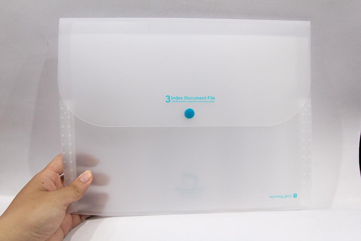 Bìa Nút 3 Ngăn - Morning Glory 79151 - Màu Trong Suốt - Bìa nút trong thích hợp để giữ giấy tờ thiết yếu khi đi học, đi họp hoặc trình ký. Bìa trong giúp bạn có thể