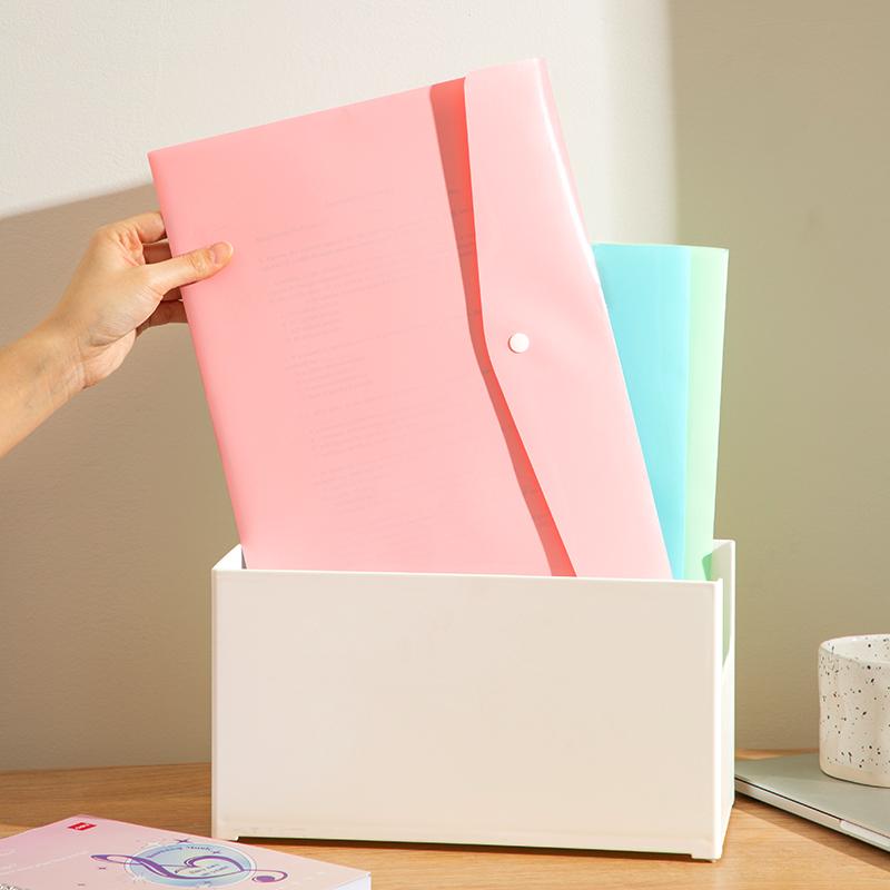 Sản phẩm không thể thiếu đối với học sinh và nhân viên văn phòng, để đựng hồ sơ và giấy tờ một cách gọn gàng, ngăn nắp. Sản phẩm có nút bóp chắc chắn, đảm bảo đồ vật không bị rơi rớt.