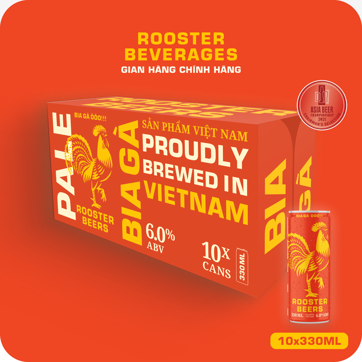 ✨Bia thủ công | Rooster Beers Pale (Bia Gà Pale) Thùng 10 Lon cao Sleek can 330ml