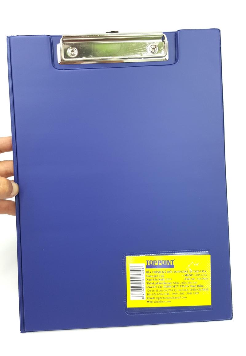 Bìa Trình Ký Đôi Toppoint A4 TOP-135A - Màu Xanh Sản phẩm được làm từ chất liệu nhựa cứng PP cao cấp. Thanh kẹp cũng được thiết kế bằng chất liệu có độ bền cao.