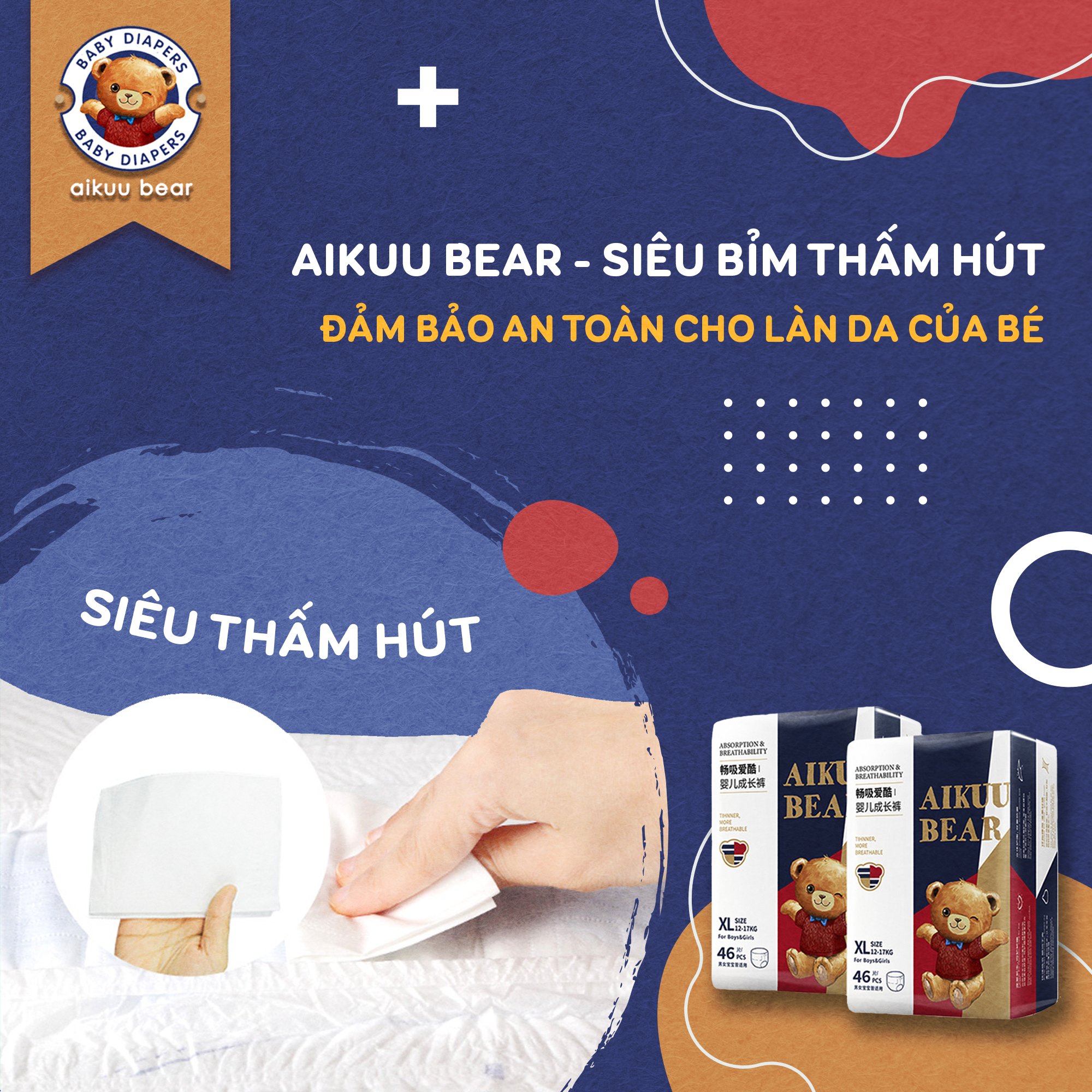 - Aikuu Bear-Dòng bỉm siêu bão đang làm mưa làm gió trong làng bỉm sữa !! Đáp ứng đủ nhu cầu của bố mẹ về dòng bỉm chất lượng siêu mềm mỏng-thấm hút tốt-êm dịu cho da bé mà giá thành lại cực kỳ hợp lý không gây đau ví cho bố mẹ!