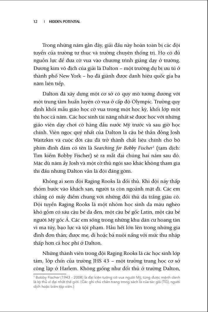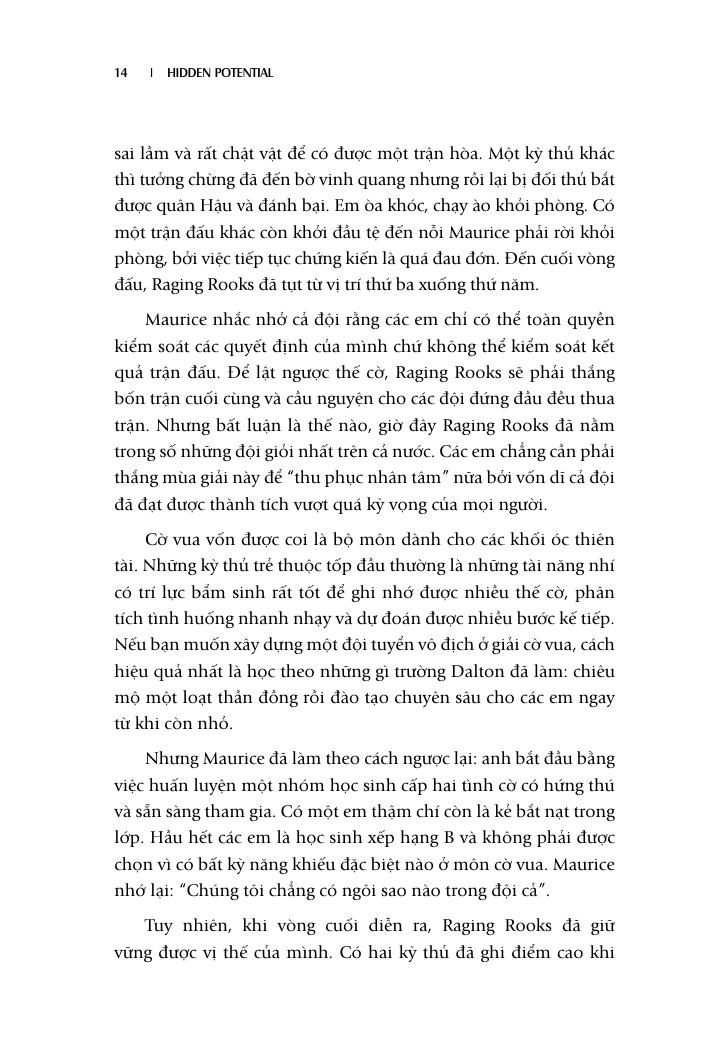 “Biến tiềm năng thành tài năng” (tựa gốc: Hidden Potential) của Adam Grant là một tác phẩm đầy cảm hứng, giúp người đọc hiểu sâu hơn về cách khai phá tiềm năng thật sự của bản thân và của những người xung quanh. Thay vì tập trung vào tài năng thiên bẩm hay những thành công ban đầu, Grant lập luận rằng tiềm năng là một quá trình phát triển liên tục, được hình thành từ những nỗ lực có chủ đích, sự kiên trì, phản hồi tích cực và các môi trường hỗ trợ. Với một cách tiếp cận khoa học và thực tiễn, Grant mở ra một con đường rõ ràng để giúp mọi người đạt được thành công to lớn hơn.