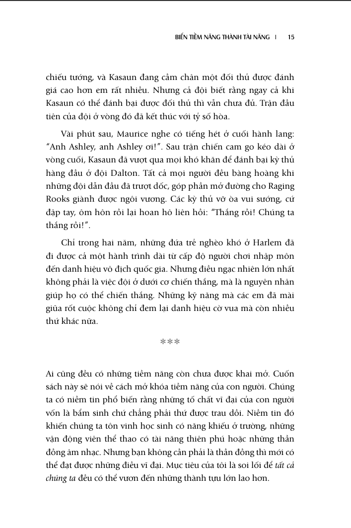 Thông qua những lập luận sắc bén và các ví dụ vừa thực tiễn vừa thú vị, Adam Grant giúp người đọc nhận ra rằng “thành công không chỉ là đạt được mục tiêu mà còn là sống theo các giá trị chúng ta coi trọng. Không có giá trị nào cao cả hơn việc khao khát trở thành một người tốt hơn so với phiên bản của ta ở hiện tại. Không có thành tựu nào vĩ đại hơn việc giải phóng tiềm năng còn đang ẩn giấu trong ta”. Vì lẽ đó, “Biến tiềm năng thành tài năng” không chỉ là một tác phẩm giàu cảm hứng mà còn mang đến một cái nhìn toàn diện về cách chúng ta có thể khai phá tiềm năng của bản thân và những người xung quanh.