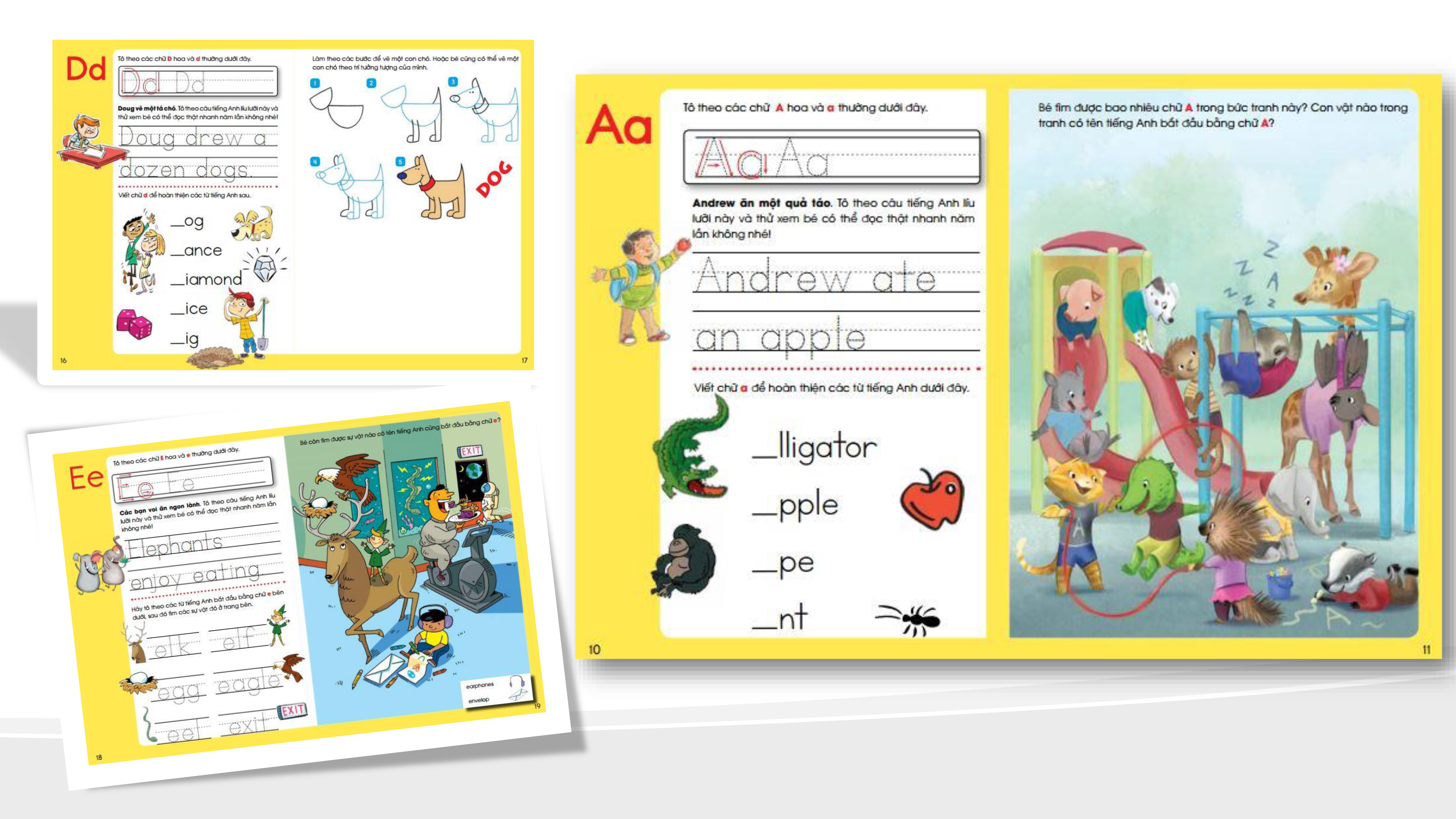 Học chữ cái và từ vựng thông qua những hình ảnh vui nhộn sẽ khiến trẻ thích mê và nhớ cực nhanh, hơn nữa cha mẹ có thể dạy trẻ cả phát âm tiếng anh và tiếng việt song song với nhau.