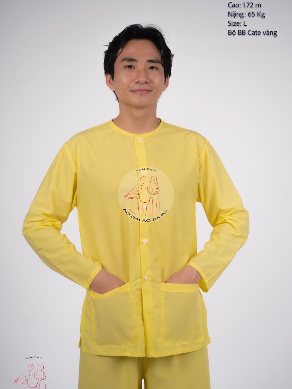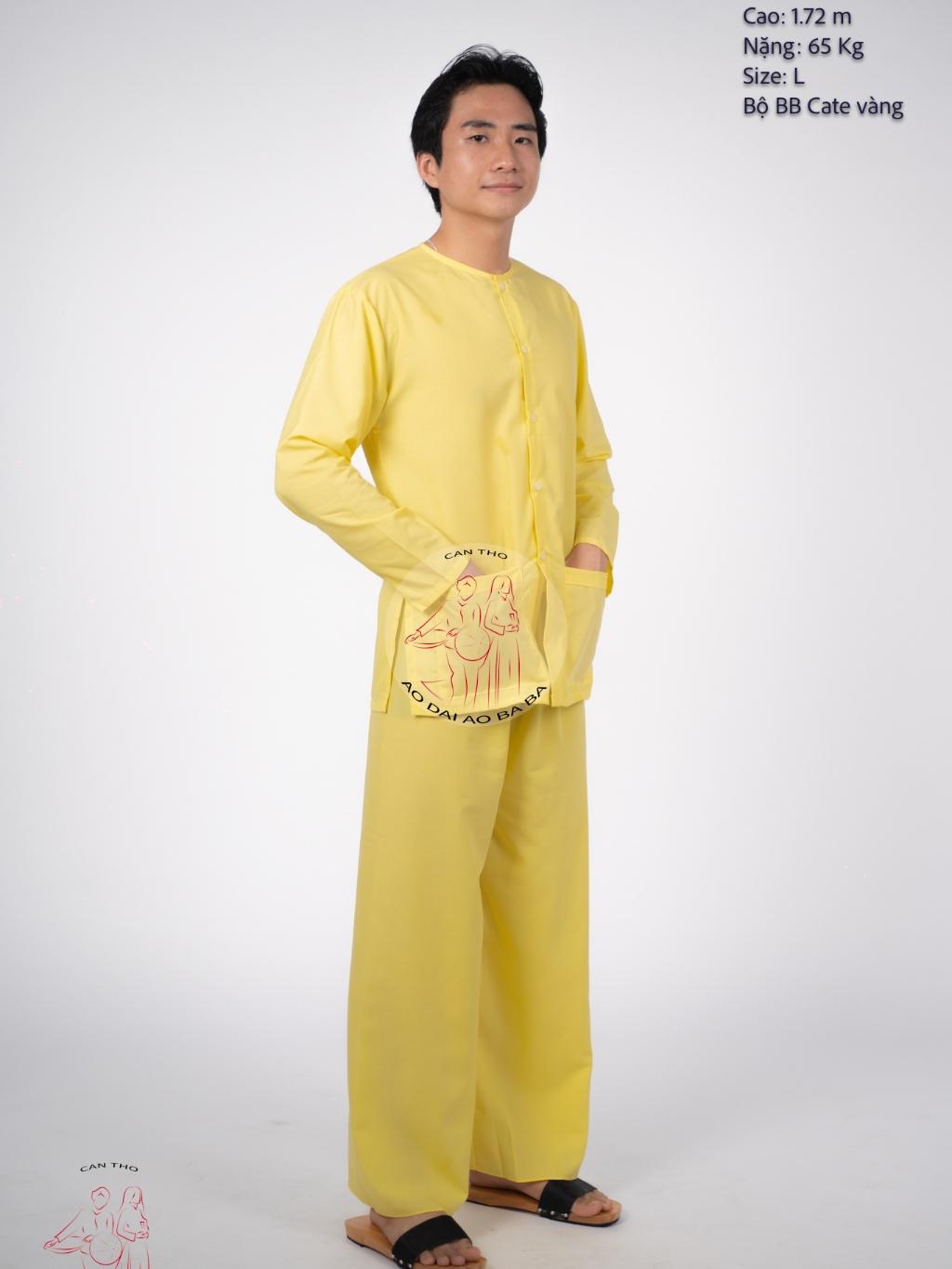 Bộ Bà Ba Nam Áo Vàng và Quần Nâu Vải Kate Mô tả chi tiết: • Chất liệu: Vải kate, thoáng mát, mềm mại và bền đẹp. • Màu sắc: Áo vàng- quần nâu đất