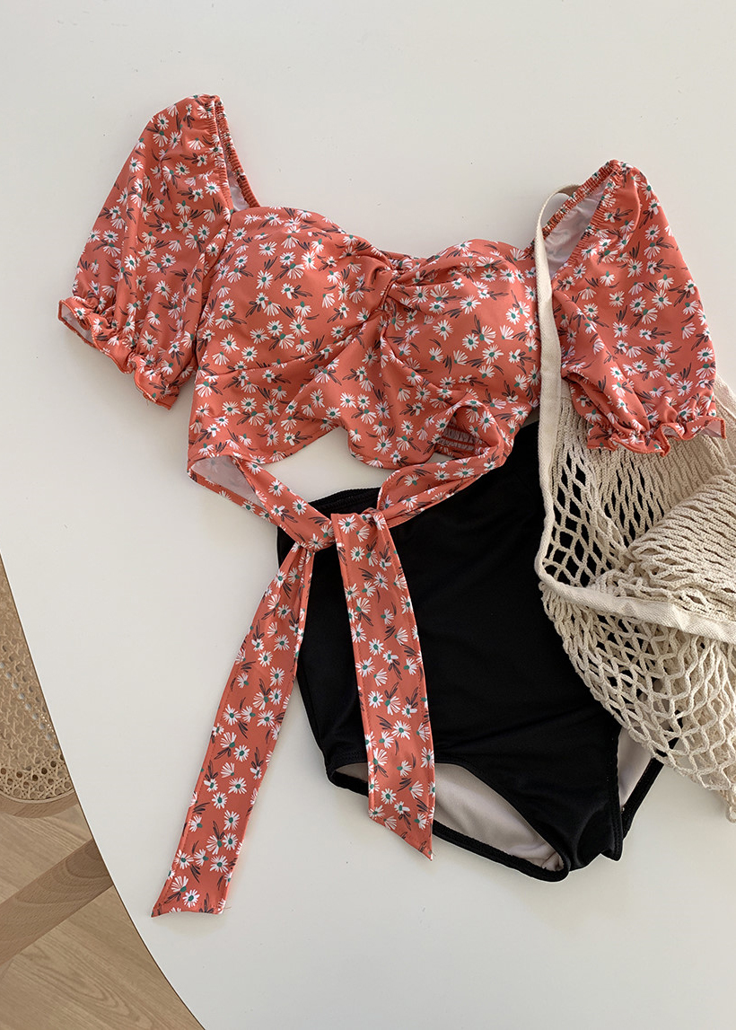✨Bikini 2 mảnh cạp cao, áo croptop hoa nhí, tay bèo xinh xắn dấu bắp tay | KT061