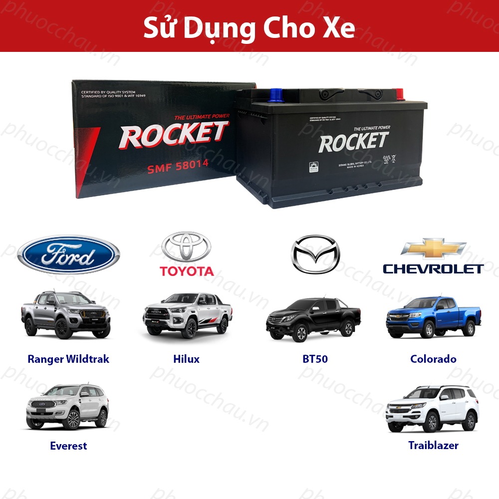 Mua tại Tiktok► Ắc Quy ROCKET SMF 58014 (12V-80Ah) là ắc quy khô, kín khí (miễn bảo dưỡng). Ắc quy Rocket được sản xuất bởi Công ty Global Battery, Rocket không chỉ là thương hiệu đại diện cho Hàn Quốc mà còn là một trong năm thương hiệu hàng đầu xuất khẩu sang hơn 130 quốc gia trên thế giới. Ắc Quy Rocket đa dạng với nhiều loại ắc quy thiết kế chuyên biệt sử dụng cho từng mục đích: Ô tô, xe điện, xe Golf, xe nâng, lưu điện UPS ► Thông Số Kỹ Thuật: