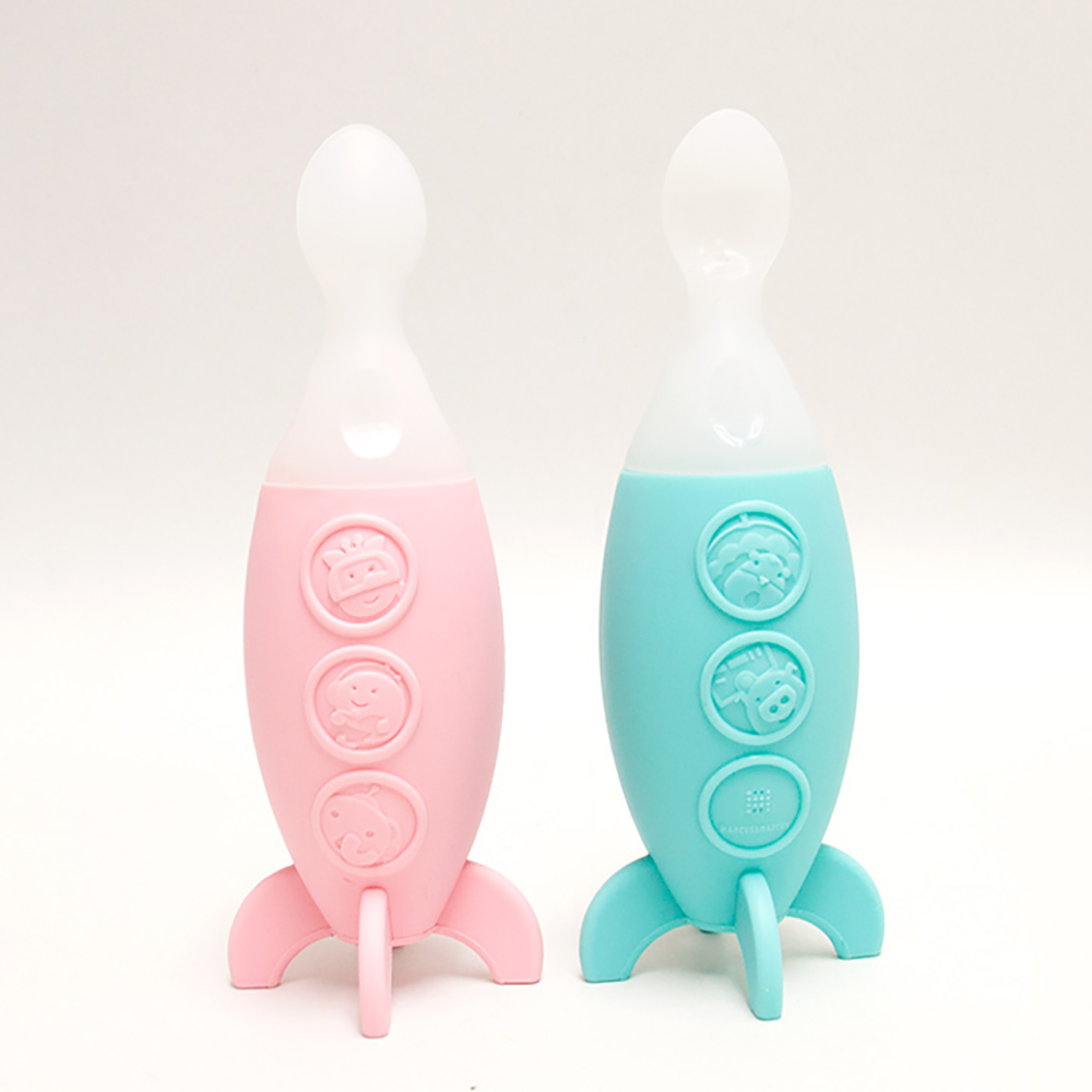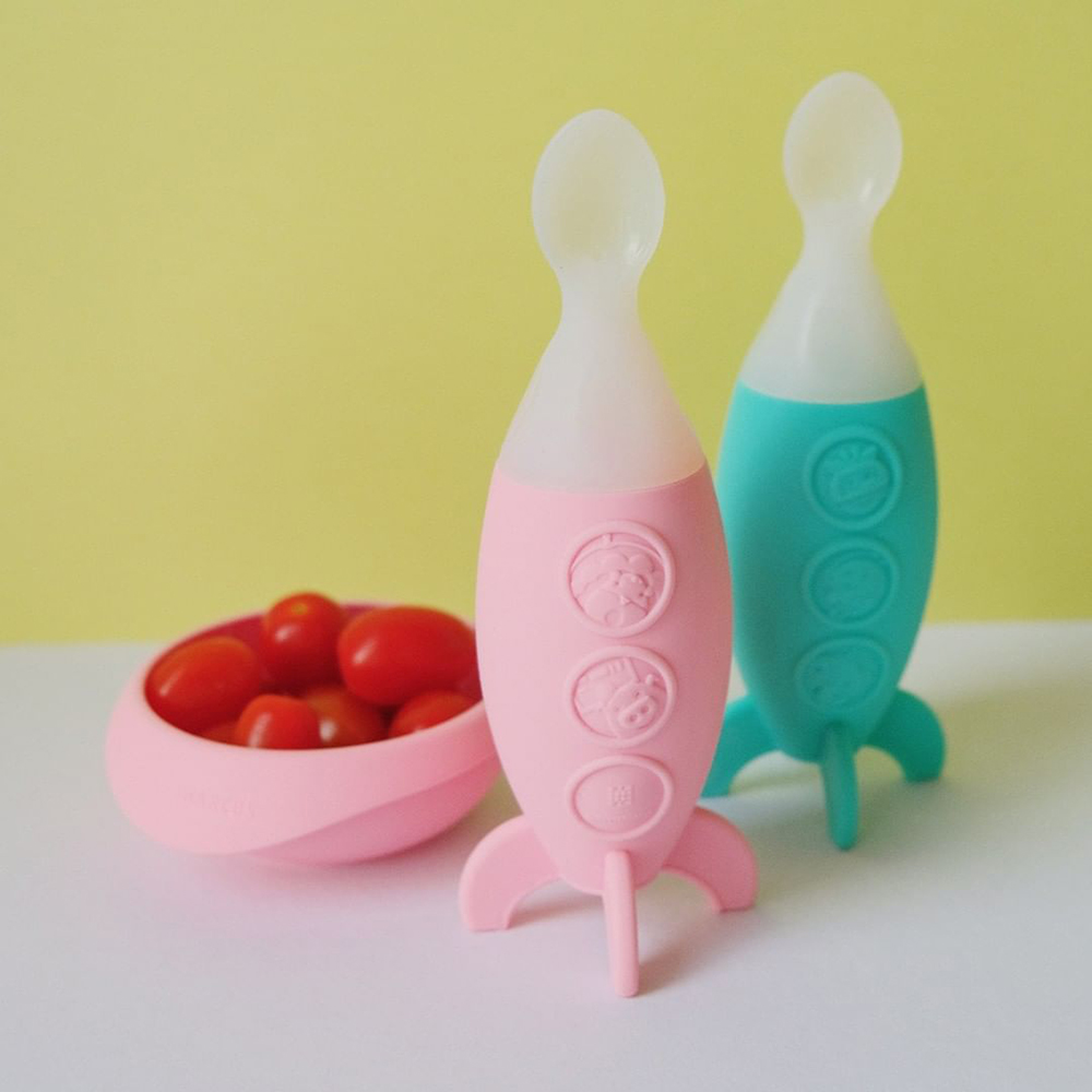 Bình bóp ăn dặm silicon có thìa Marcus & Marcus được thiết kế hiện đại, tiện lợi, đặc biệt dễ dàng cho mẹ sử dụng chăm bé ăn, đầu thìa mềm mại khuyến khích bé ăn nhiều hơn. Hình dáng tên lửa và màu sắc sinh động làm cho bé thích thú hơn với mỗi bữa ăn. Bé sẽ được khám phá chơi đùa với đồ ăn thỏa thích, kích thích sự thèm ăn và giúp bé ăn ngon miệng hơn.