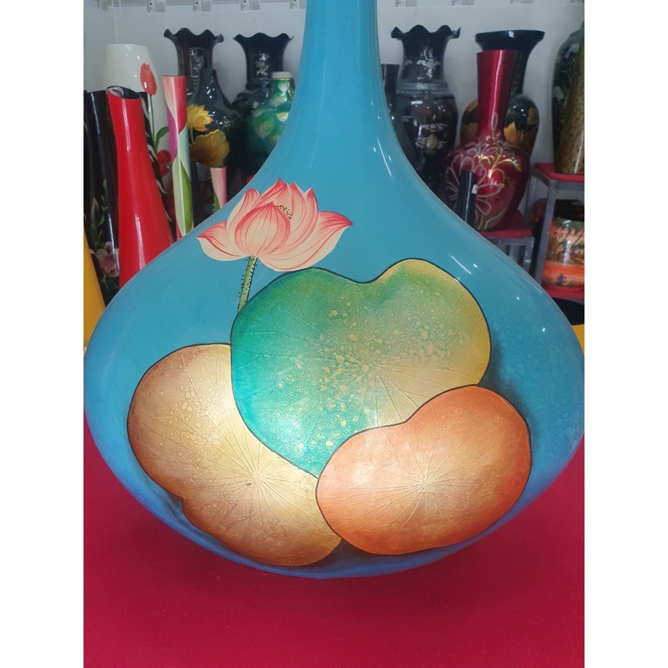 Bình sơn mài cao cấp làm từ composite, có thể đựng nước, họa tiết phong phú đẹp mắt, giúp làm sáng bừng, sang trọng không gian của bạn.