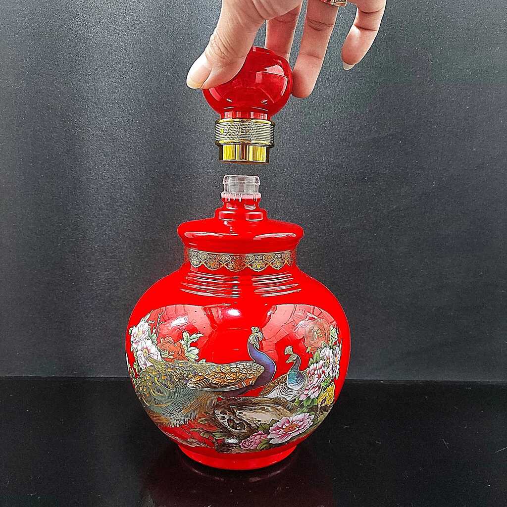Bình Đựng Rượu Thủy Tinh cao cấp 1500ml mẫu bầu tròn màu đỏ may mắn Chai Đựng Rượu Thủy Tinh – Vỏ Chai Rượu Đẹp decor (H1) Glass bottle 1500ML – Ground shape – Lucky Red color - Peafowl pattern (H1) Chất Lượng: tiêu chuẩn y tế và sức khỏe, công bố bởi bộ y tế Chứng Chỉ: ISO14001,ISO9001,OHSAS18001 Kiểu dáng sang trọng bắt mắt. Ứng dụng Bình Đựng Rượu Thủy Tinh 1500ML bầu tròn * Chiết rượu từ bình ngâm lớn để tiếp khách, vừa sang trọng vừa tăng hương vị. * Chiết rượu vang từ chai, bịch lớn, dễ dàng rót trong bữa ăn hàng ngày. * Đóng chai thức uống thương phẩm, nâng cao tính cạnh tranh trên thị thường.