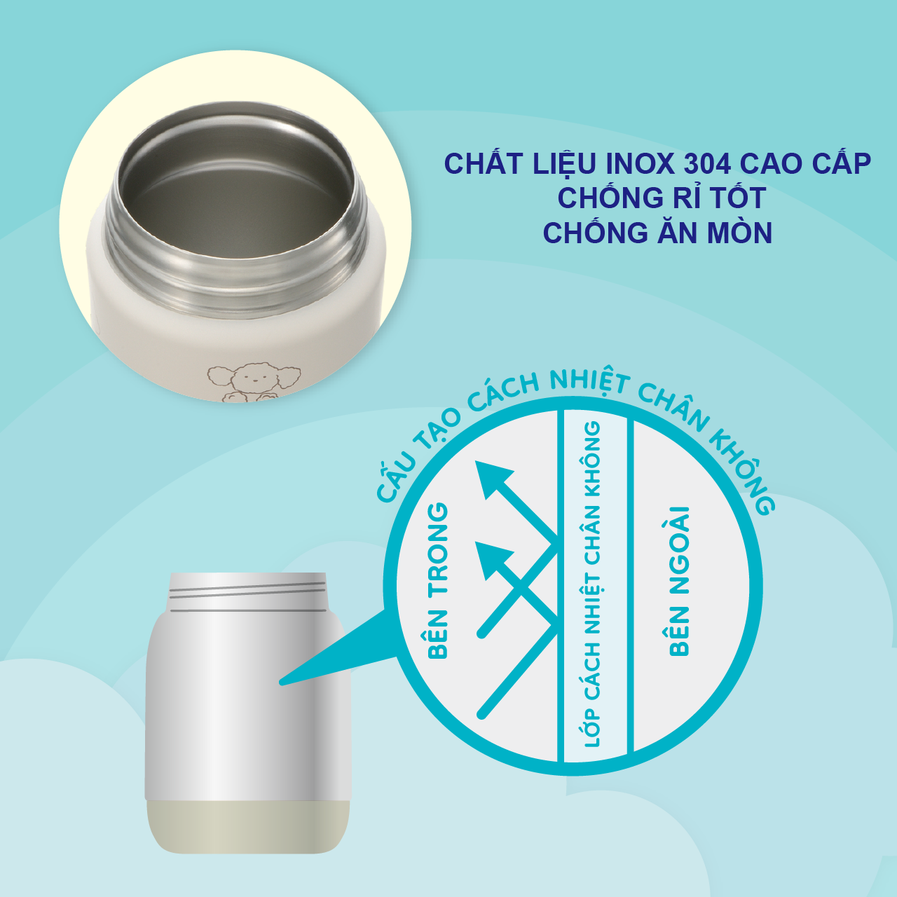 Sự an toàn cho trẻ em: Đây là bình dùng cho trẻ em có thiết kế kín, chống rò rỉ nước. Đổ nước sôi vào bình kín có thể làm tăng áp suất bên trong, có thể xảy ra hiện tượng phun hơi nước nóng bất ngờ khi mở bình.