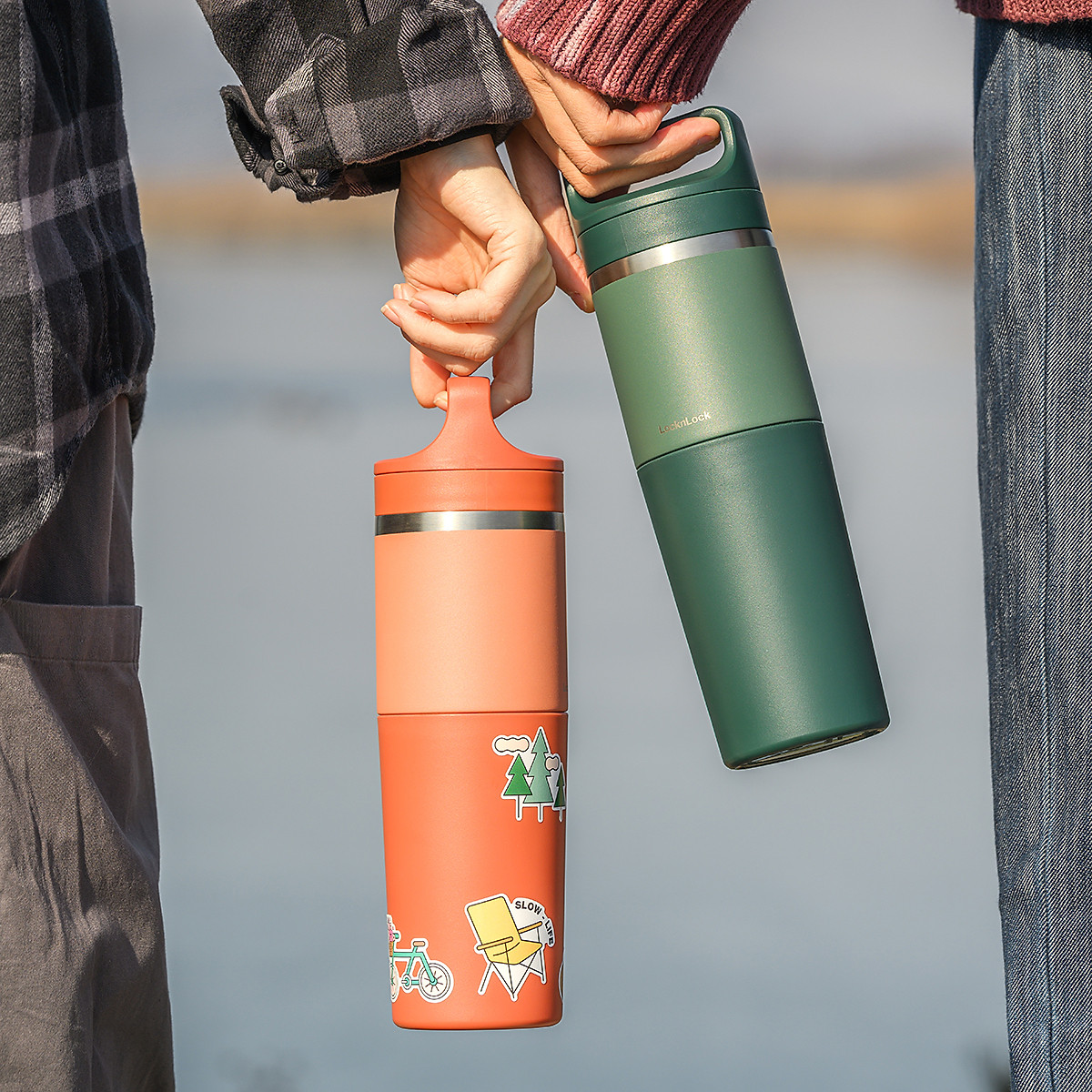 Bình Giữ Nhiệt Inox LocknLock SLO 2 trong 1 600ml LHC4332, Hàng chính hãng, cốc nhựa đi kèm, quai xách tiện lợi -JoyMall