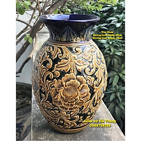 Bình hoa cao cấp Bát Tràng, hàng chuẩn loại 1, dáng chum họa tiết đắp nổi được thực hiện thủ công 100% bởi bàn tay lành nghề của các nghệ nhân làng nghề. Sản phẩm
