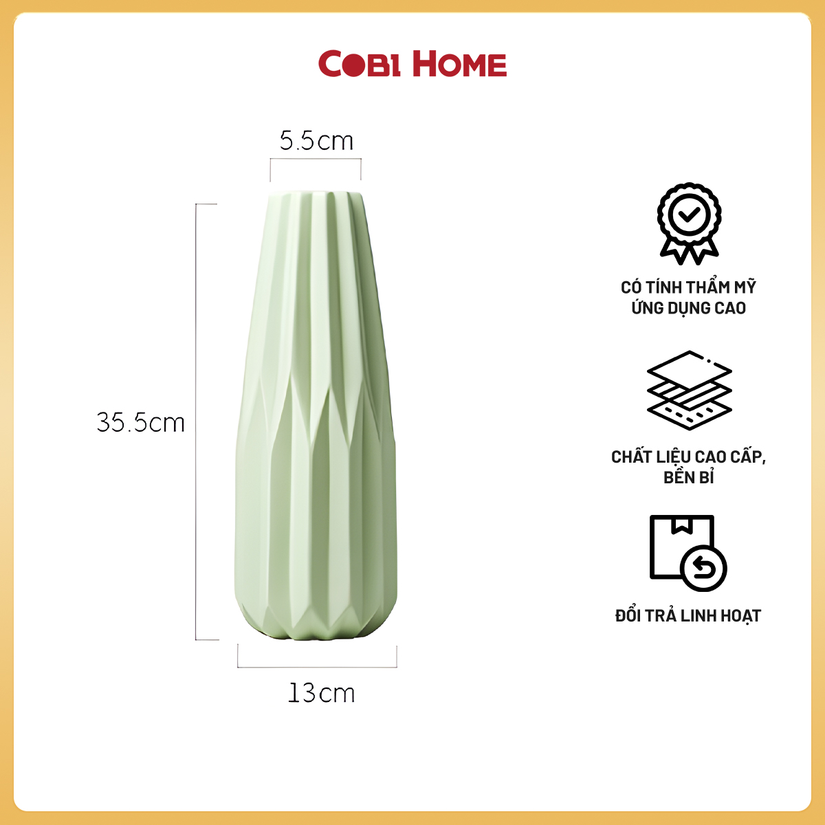 ️Đặc điểm sản phẩm: Chất liệu: gốm sứ Men: Hoàng thổ Kích thước: H35cm x D18cm