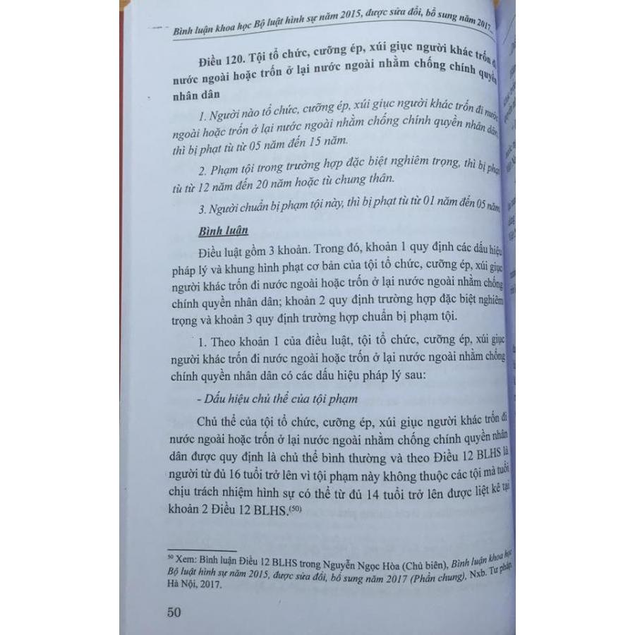 Bình luận khoa học Bộ luật hình sự năm 2015 được sửa đổi, bổ sung năm 2017 (Phần các tội phạm) - Quyển 1 Tác giả: GS.TS Nguyễn Ngọc Hoà (Chủ biên) NXB Tư pháp