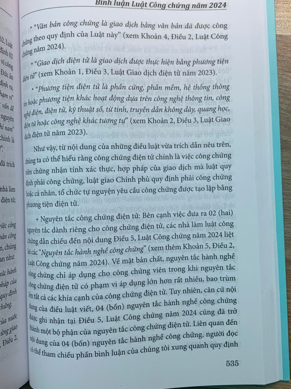 Nhằm cung cấp cho độc giả một góc nhìn toàn cảnh các quy định của Luật Công chứng năm 2024 trước những thay đổi nhanh chóng của thực tiễn cuộc sống cũng như việc sửa đổi, bổ sung rất nhiều đạo luật có liên quan trực tiếp hoặc gián tiếp đến hoạt động này, Nhà xuất bản Tư pháp xuất bản cuốn “Bình luận Luật Công chứng năm 2024”. Dưới nhãn quan của công chứng viên, các tác giả đã phân tích, bình luận một số nội dung của Luật chủ yếu dựa trên kinh nghiệm hành nghề thực tế của bản thân, yêu cầu, đòi hỏi khách quan của cuộc sống được đặt trong tương quan so sánh với nội dung những văn bản quy phạm pháp luật điều chỉnh một số lĩnh vực có liên quan mật thiết đến hoạt động công chứng.