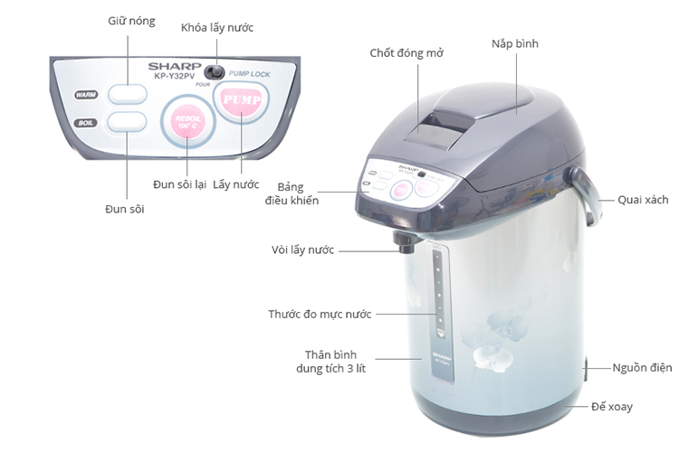BÌNH THỦY ĐIỆN SHARP KP-31BTV 2.8 LÍT Bình thủy điện là thiết bị gia dụng cần thiết khi bạn cần sử dụng nước nóng thì có ngay không cần mất thời gian đi đun nước,