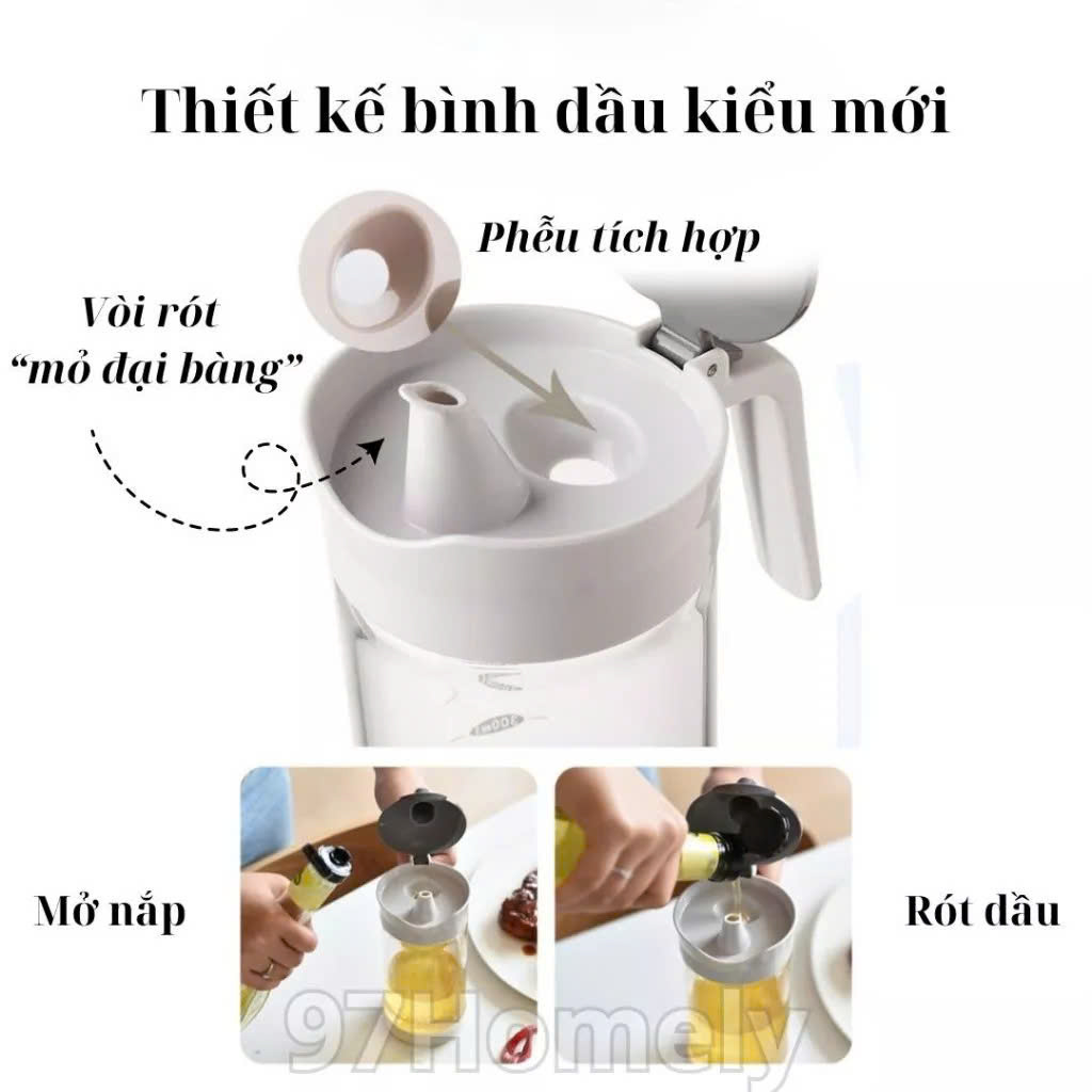 Bình Thủy Tinh Rót Dầu Ăn/Nước Mắm Có Vòi & Phễu Tích Hợp – Dung Tích 500ml – Chai Đựng Gia Vị Thông Minh, Chịu Nhiệt, Có Vạch Chia