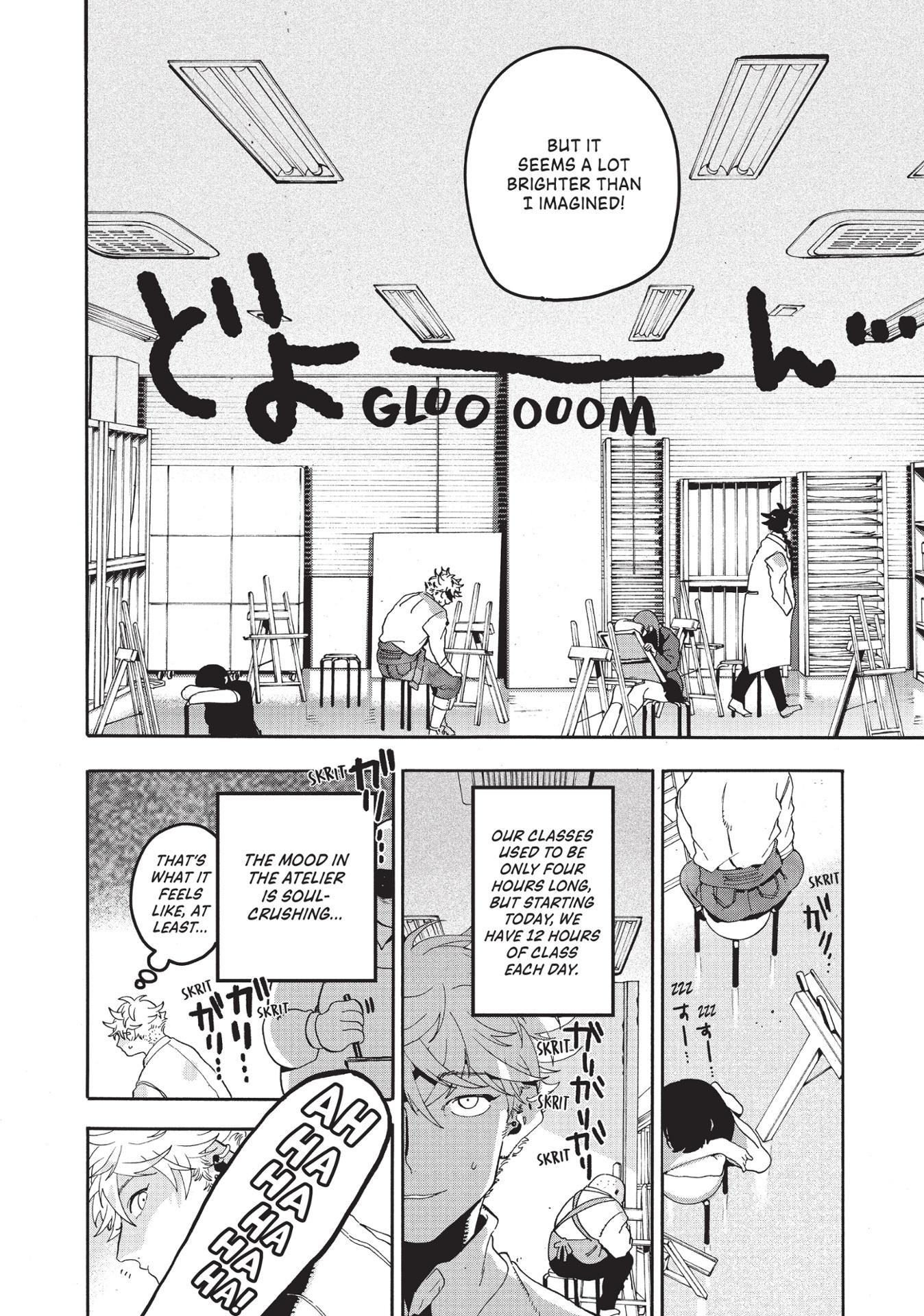 Yatora now has new materials in his tool box and a wider range of expression under his belt. But a week before the first exam, Ooba-sensei says he’s missing a crucial edge… With so much at stake, Yatora’s self-doubt brings him lower than ever before. Still, he has his fire, his resilience—and he might just get a lucky break, too.