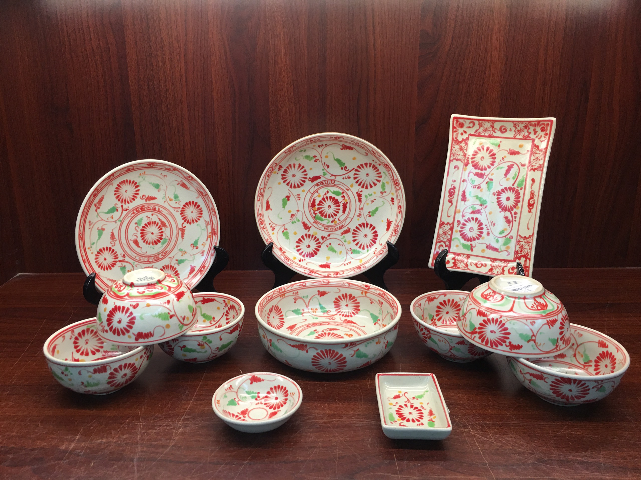 ✨Bộ 12 Sản Phẩm Vẽ Hoa Văn Đỏ Cao Cấp Gốm Sứ Bát Tràng