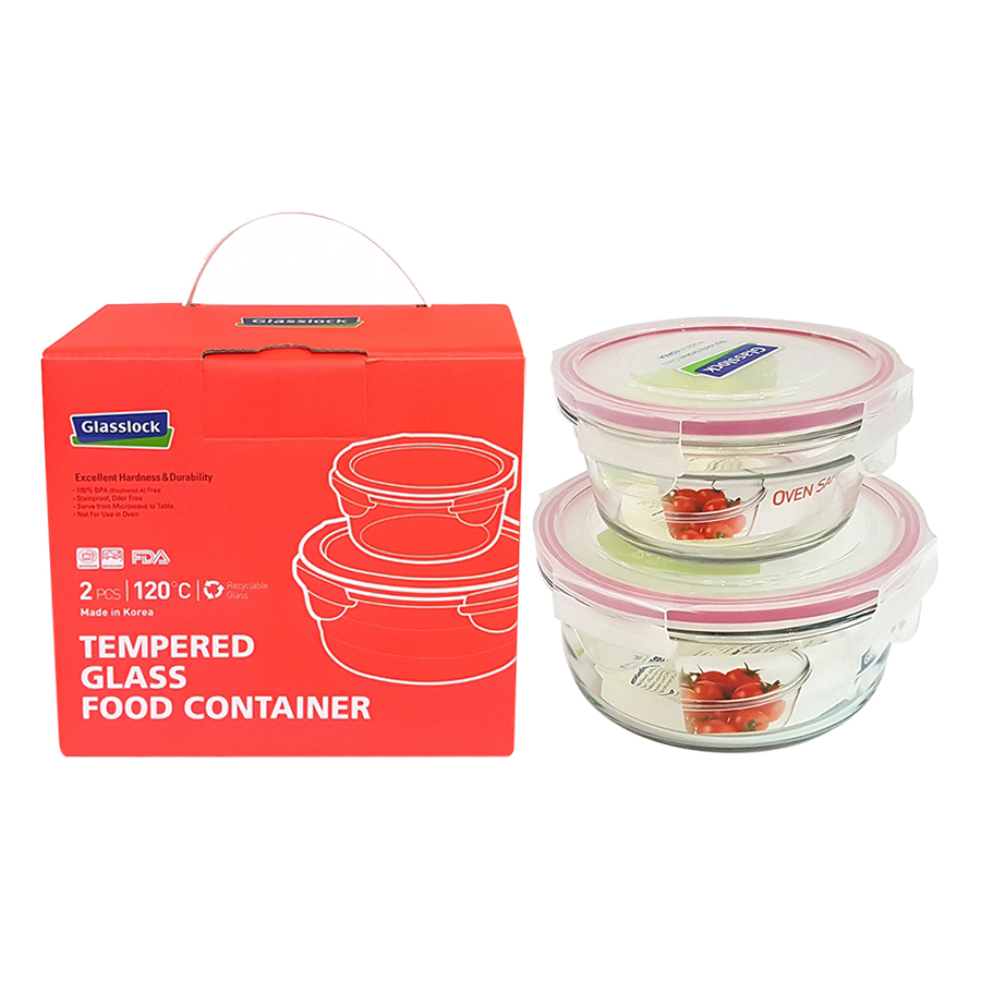 - Bộ 2 Hộp Thủy Tinh Hình Tròn Glasslock GL1684 (450 + 930 ml) thiết kế dạng tròn, kín hơi, làm từ chất liệu thủy tinh cao cấp với các đặc tính như chịu nhiệt cao đảm bảo vệ sinh, dễ chùi rửa, màu sắc khó phai, chịu va đập tốt và có thể sử dụng trong lò vi sóng. x000D