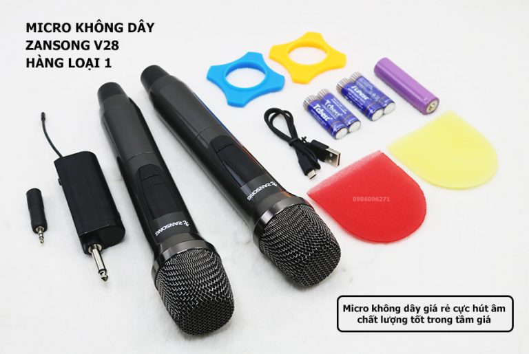 - Micro không dây đầu thu mini Zansong V28 có tay micro thiết kế đẹp, phủ một lớp sơn tĩnh điện bóng màu đen xám đem lại tính thẩm mỹ cao cho micro, khả năng cầm nắm rất tốt. Tay Micro không dây đầu thu mini Zansong V28 giá rẻ Dầu thu micro không dây V28 nhỏ gọn2. Cấu hình trọn bộ sản phẩm micro không dây đầu thu mini Zansong V28 Trọn bộ micro không dây đầu thu mini Zansong V28 bao gồm: