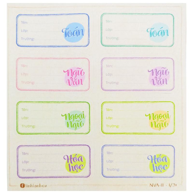 ✨Bộ 28 Nhãn Vở A Cấp III - Linh Lan