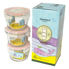 Bộ 3 hộp đồ ăn dặm thuỷ tinh cường lực 210ml Glasslock GL544 – sản xuất tại Hàn Quốc
