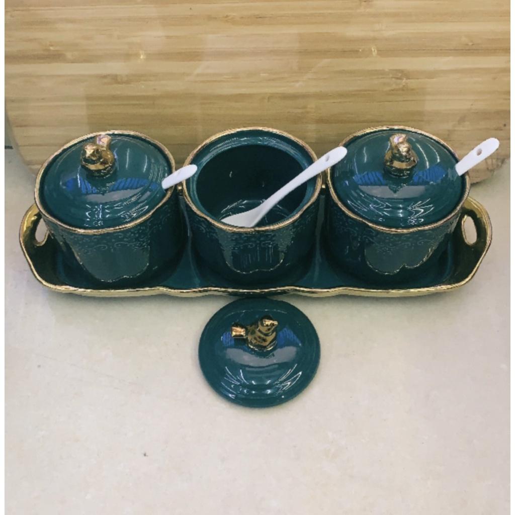 ✨BỘ 3 HŨ ĐỰNG GIA VỊ SỨ KẺ SỌC VIỀN VÀNG CAO CẤP