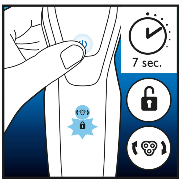 - Sau khi thay đầu cạo, bạn có thể đặt lại lời nhắc thay thế bằng cách nhấn nút bật / tắt trong hơn 7 giây. Nếu không, kích hoạt thay thế sẽ tự động tắt sau 9 lần cạo liên tiếp. * Để có hiệu suất cạo tối đa, bạn nên thay đầu cạo 24 tháng một lần