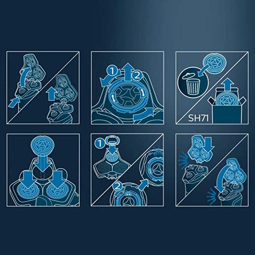 - Đầu thay thế SH71 tương thích với các dòng máy cạo râu Philips Serial 5000 và 7000 mặt vuông mới như: S5110, S5400, S5271, S5580, S7782, S7788, S8050, S7888, S7735, S7732, S7731, S5579, S5587, S5599, S