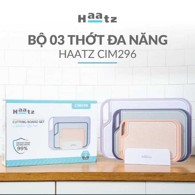 ✨Bộ 3 Thớt Kháng Khuẩn Cao Cấp Haatz CIM296 - 3 Thớt Đa Năng Chính Hãng - Bảo Hành 24 Tháng