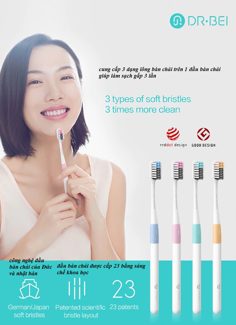 Bàn chải đánh răng DR-BEI là một sản phẩm bàn chải đánh răng, chăm sóc răng miệng và không phải là một sản phẩm công nghệ cao. Tuy nhiên chiếc bàn chải này lại hội tụ rất nhiều công nghệ cao cấp, giúp bảo vệ và chăm sóc sức khỏe răng miệng của người dùng tốt nhất.